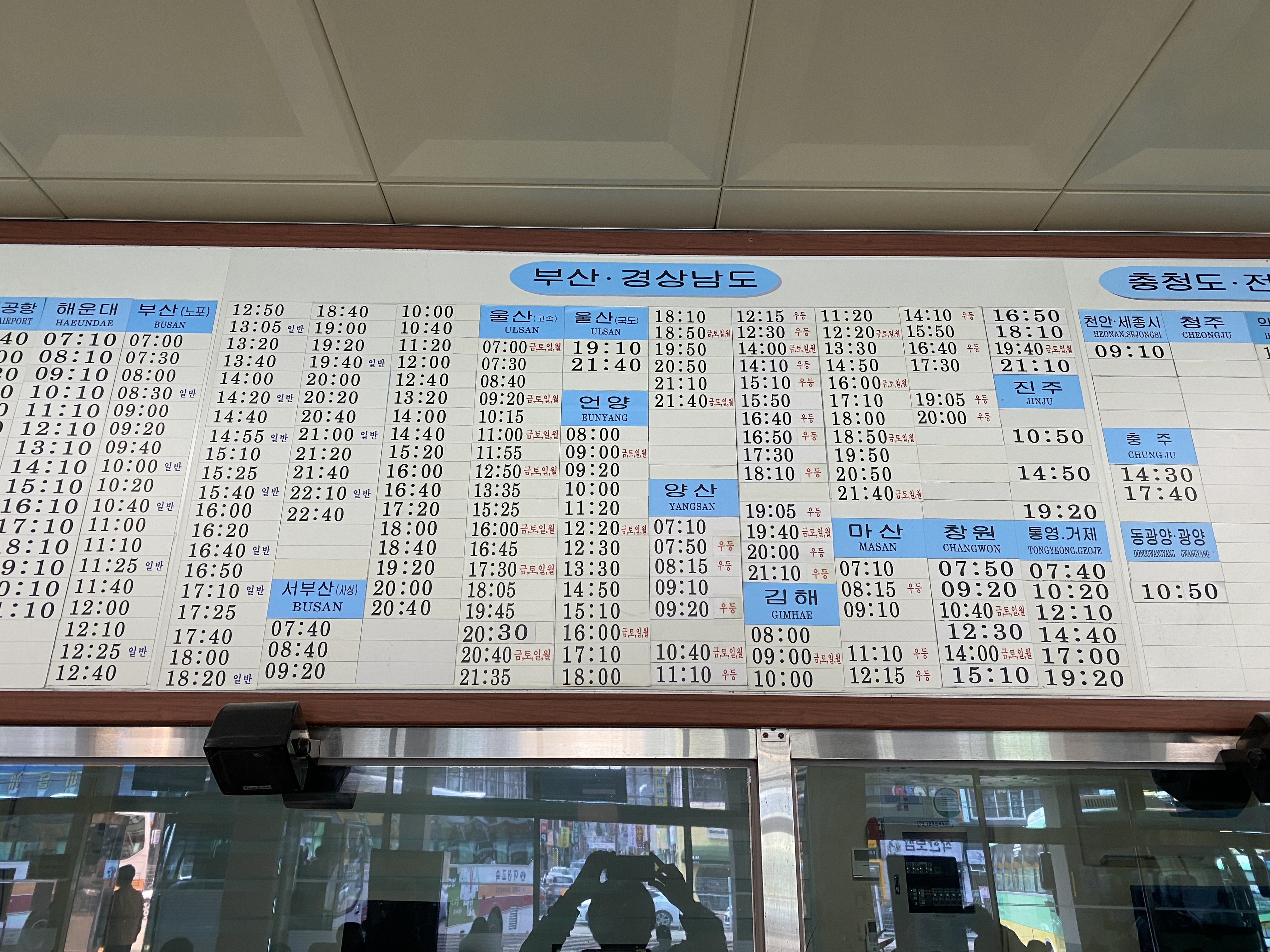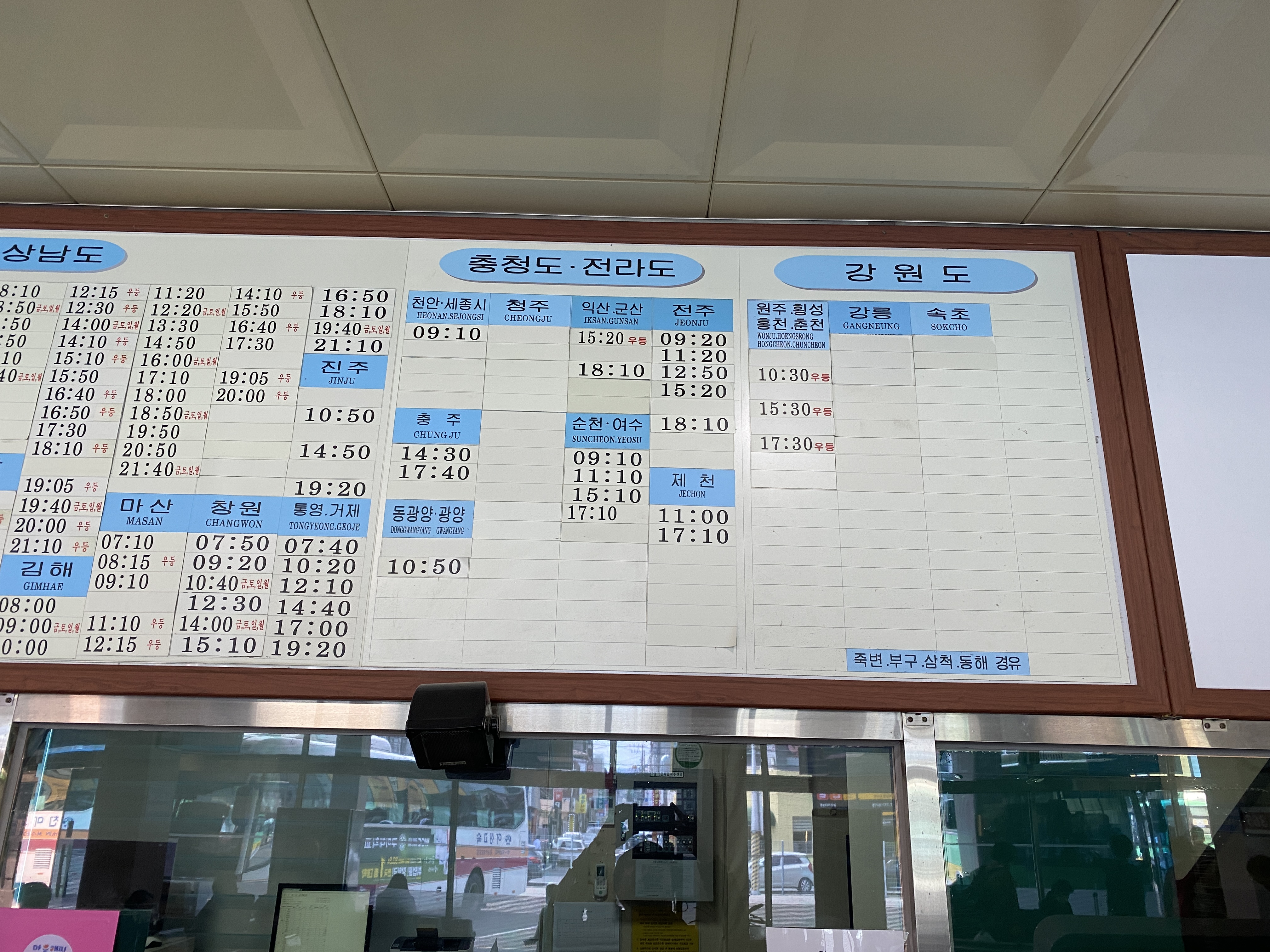 그리고 충청, 전라, 강원도로는 버스가 거의 다니지 않는다. 이 지역으로는 전주로 가는 버스가 가장 많은데, 하루에 5대 다닌다. 가려져 있는 것이 많은 걸로 보아 코로나 이후 많이 감회하는 것 같다.