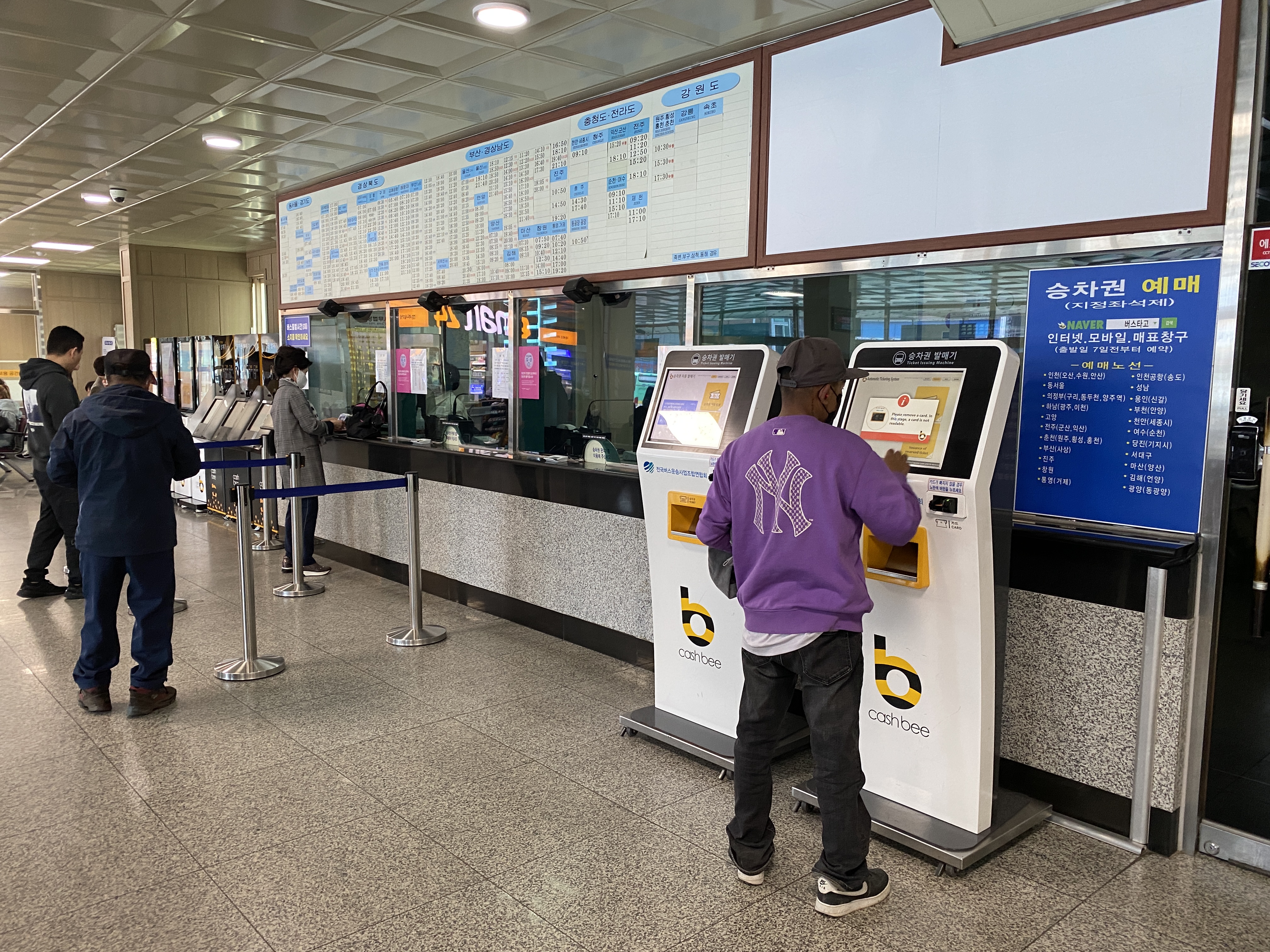 그리고 터미널의 주 기능인 매표소. 최신 경향에 맞게 캐시비에서 운영하는 무인 발권기도 있다.