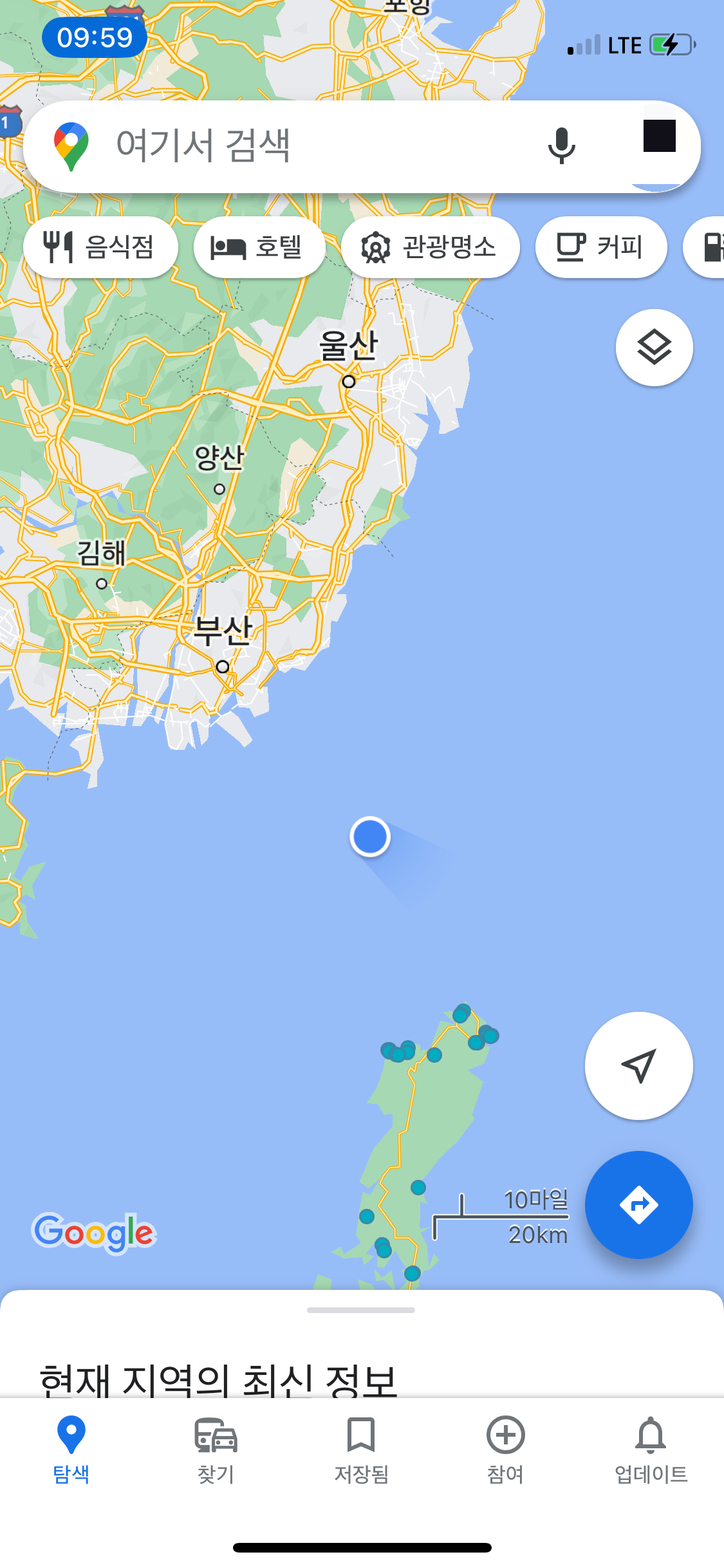 부산 영도 태종대를 지나간다.