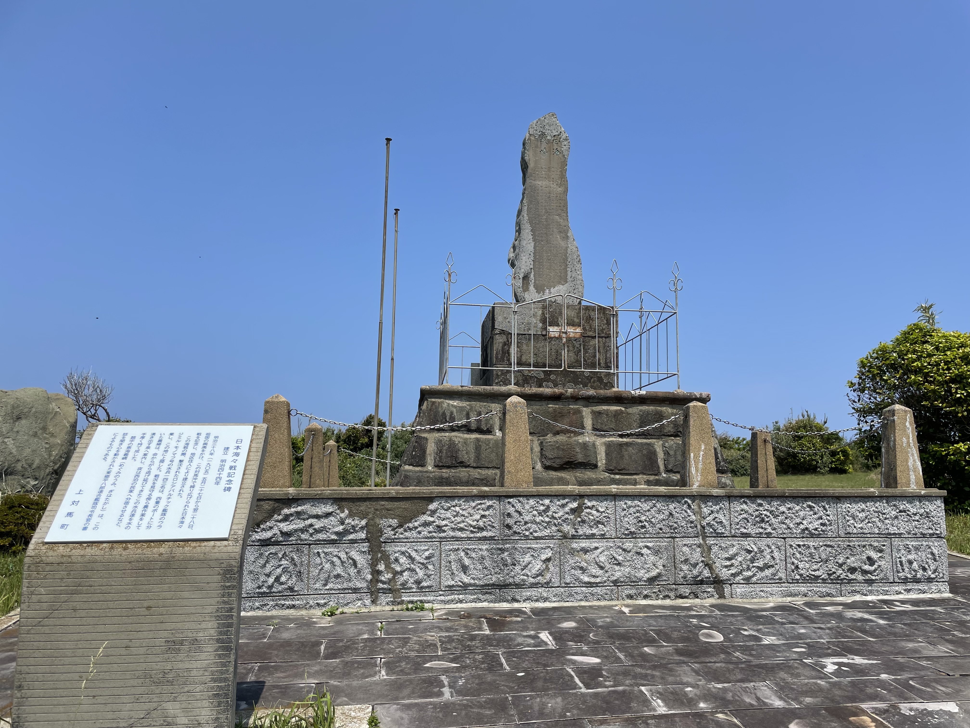 오른쪽에 보이는 비석이 쓰시마해전 기념비다.