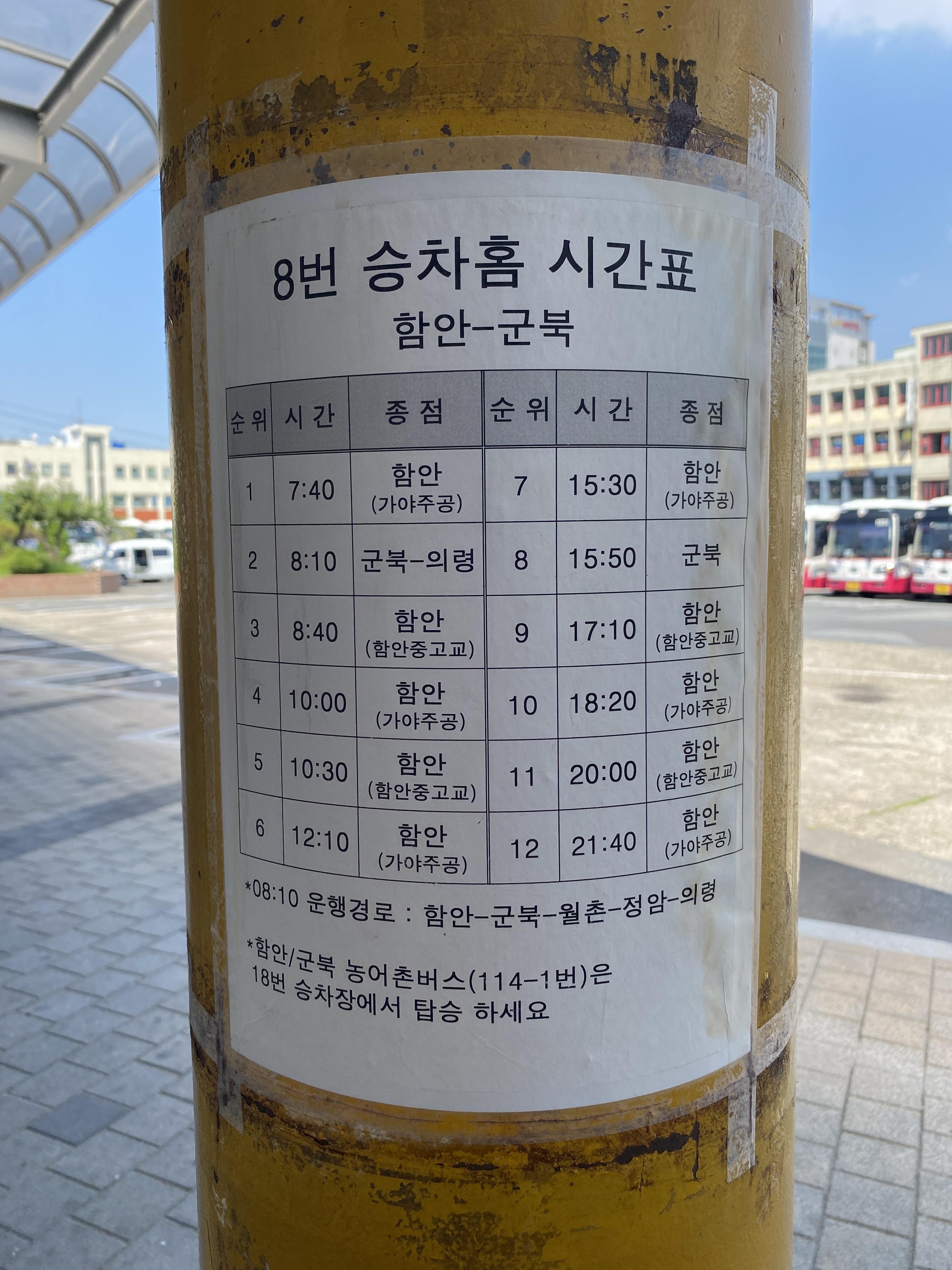 8번 승차홈: 함안-군북 방면