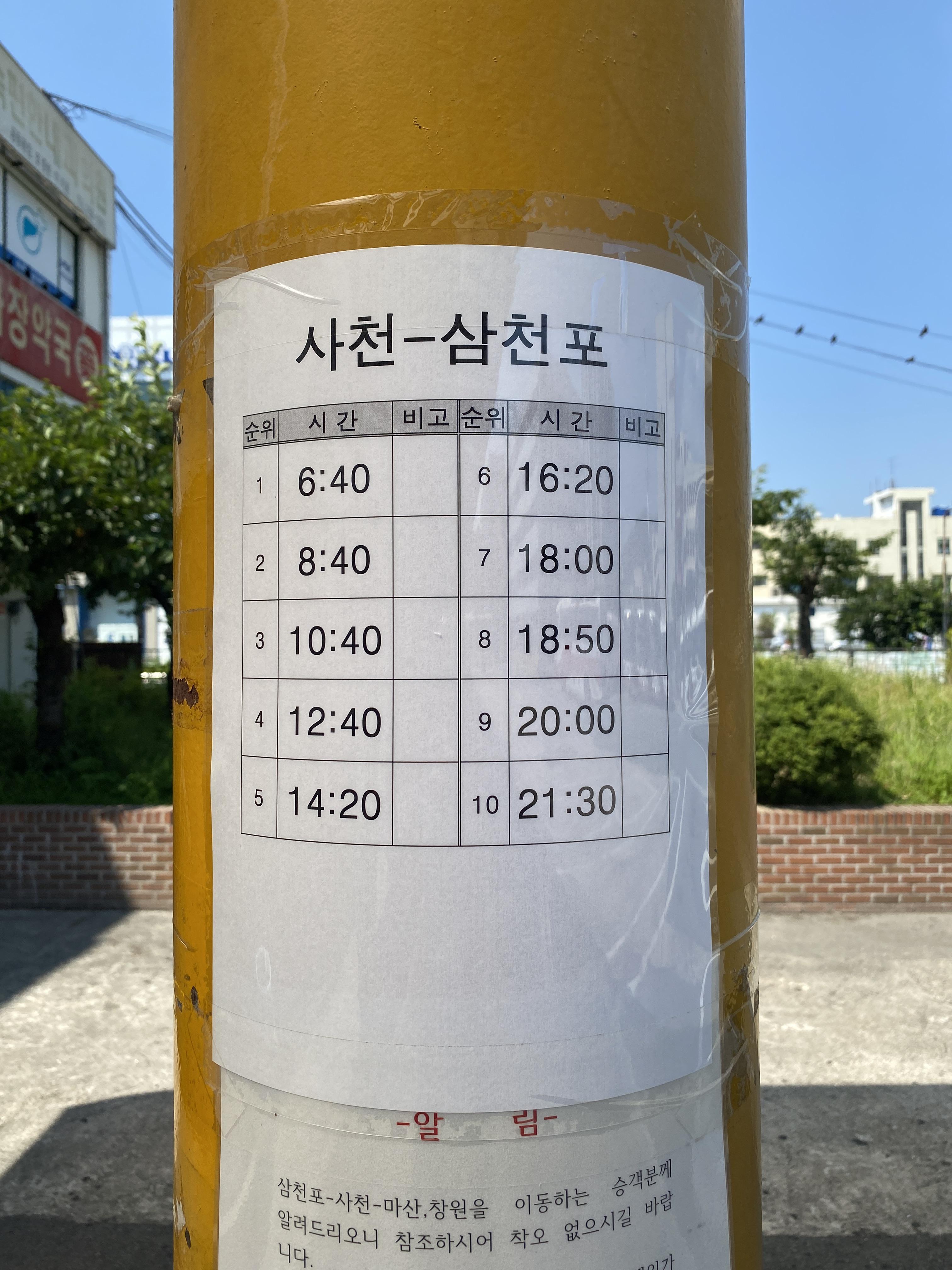 아침 6시 40분이 첫차, 저녁 9시 30분이 막차다. 2시간에 1대 정도 다닌다.