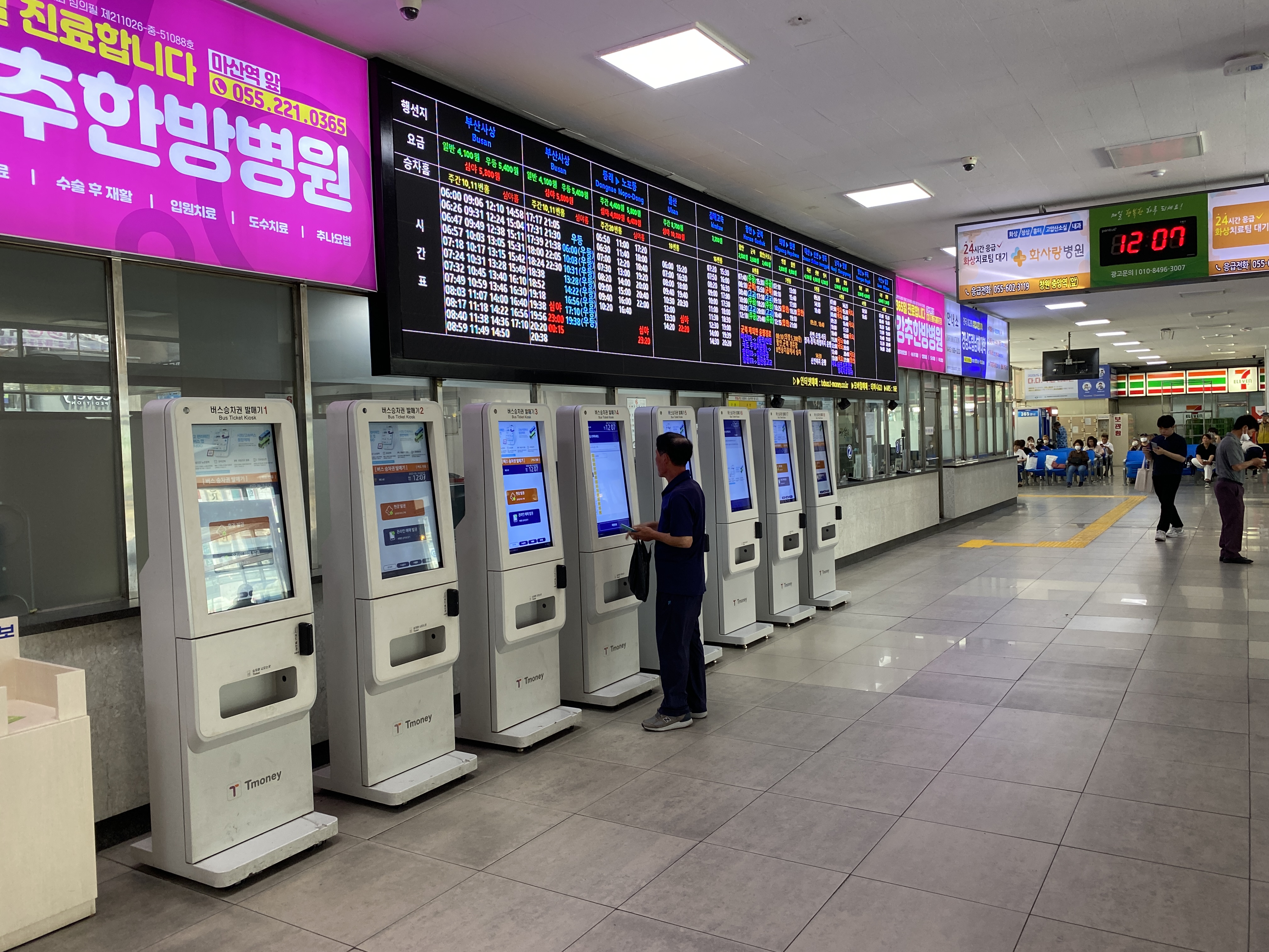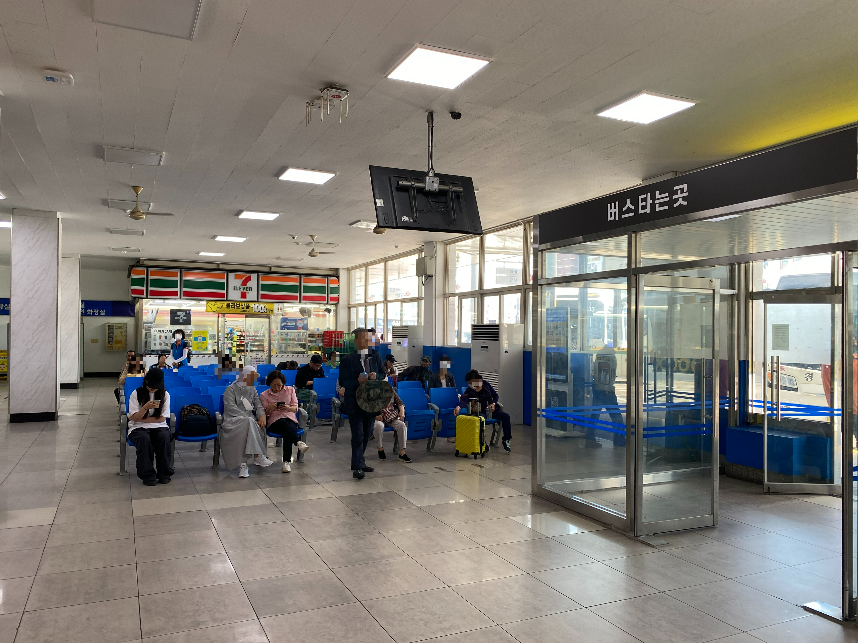 더우니 어서 터미널로 들어가야지. 매점 대신 세븐 일레븐이 있다.