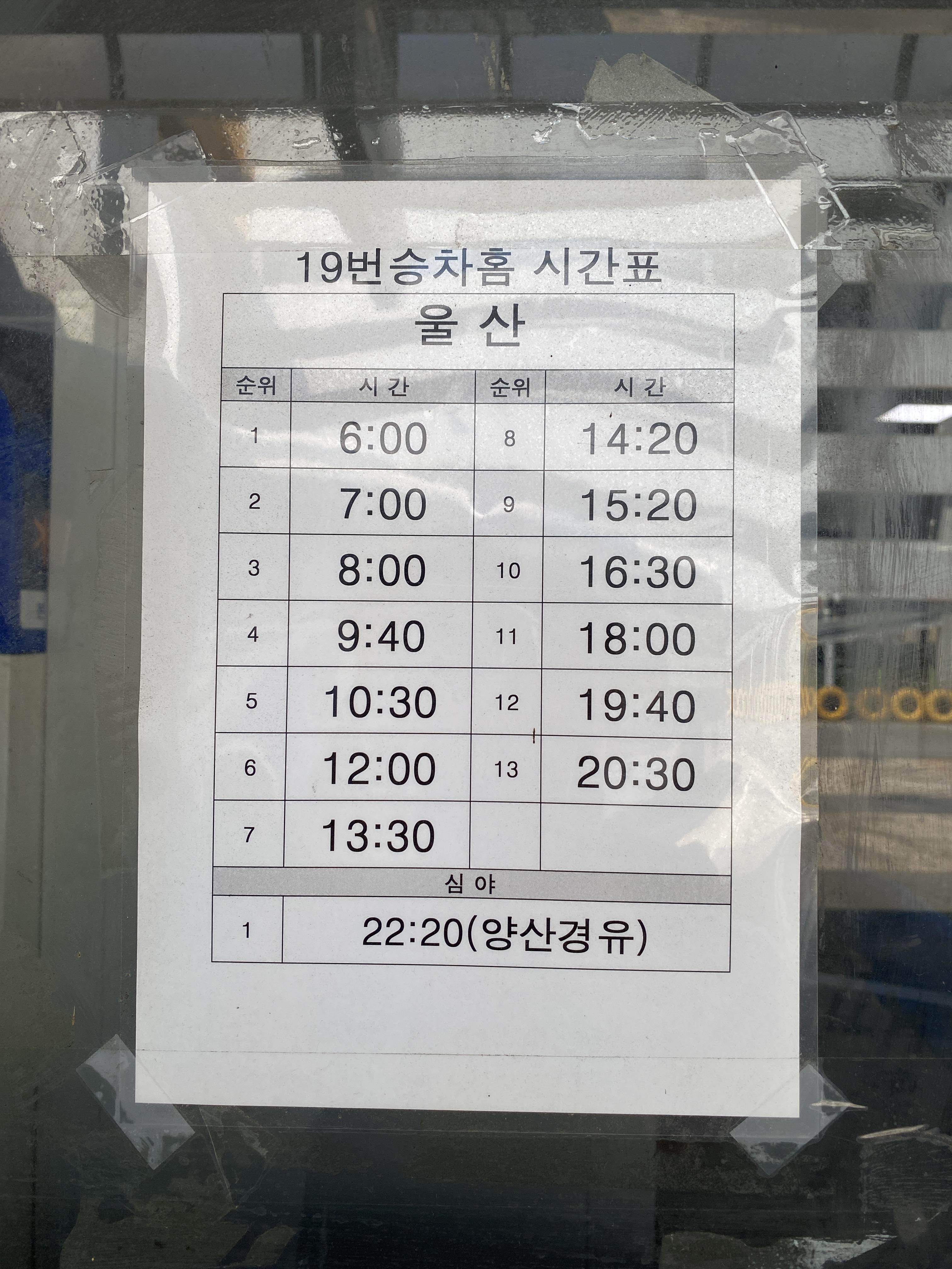 19번 승차홈: 울산방면