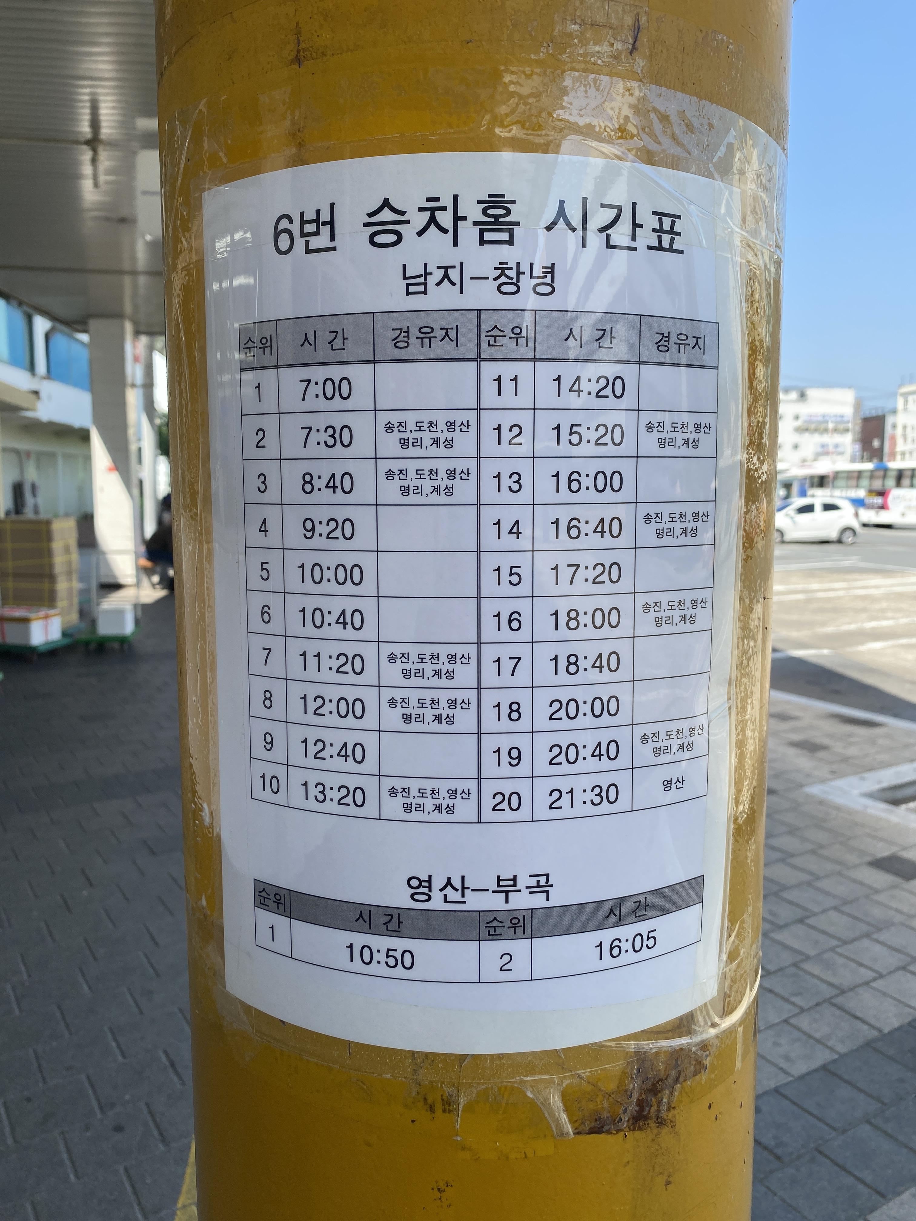 6번 승차홈: 남지-창녕 방면
