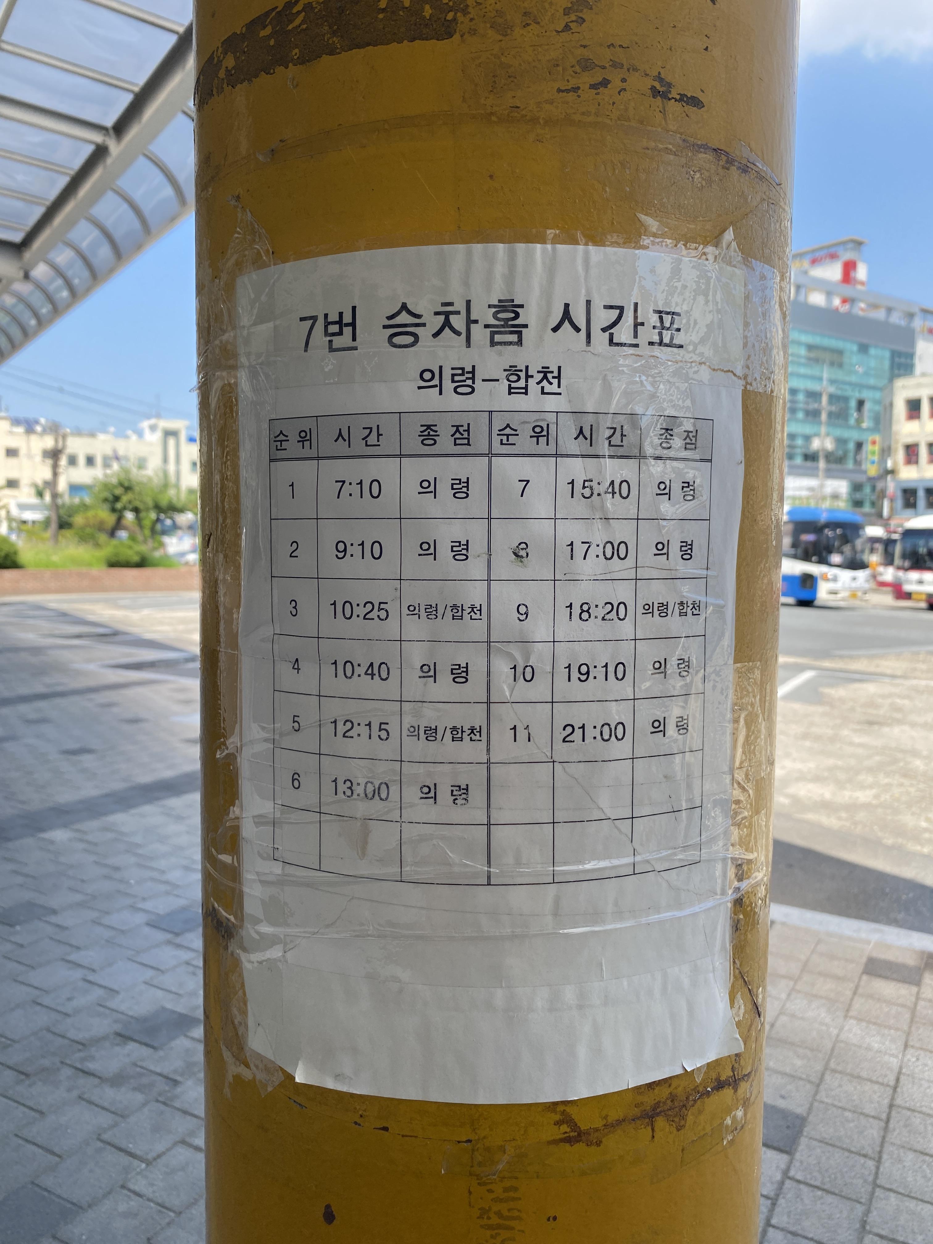 7번 승차홈: 의령-합천 방면