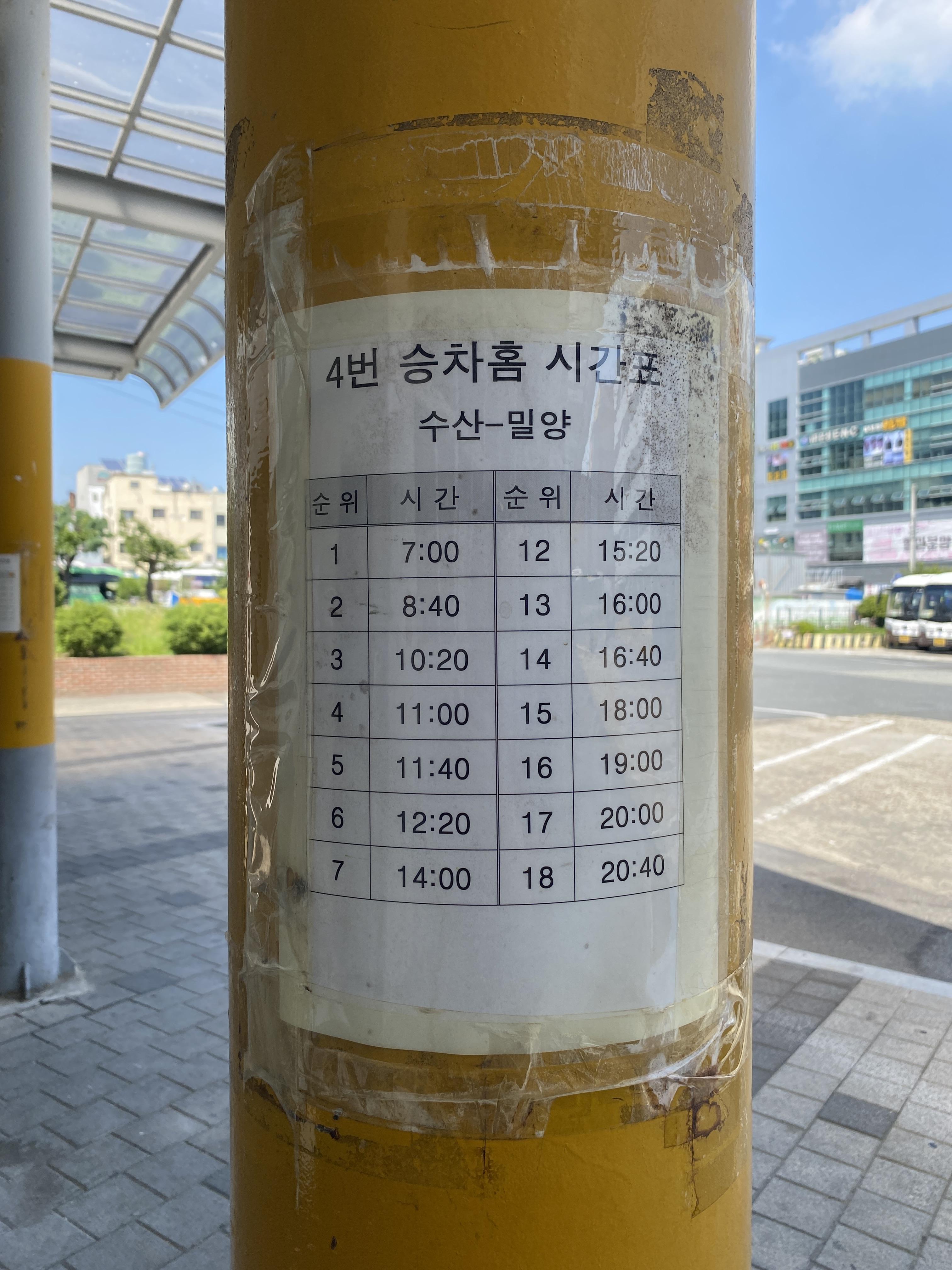 4번 승차홈: 수산-밀양 방면