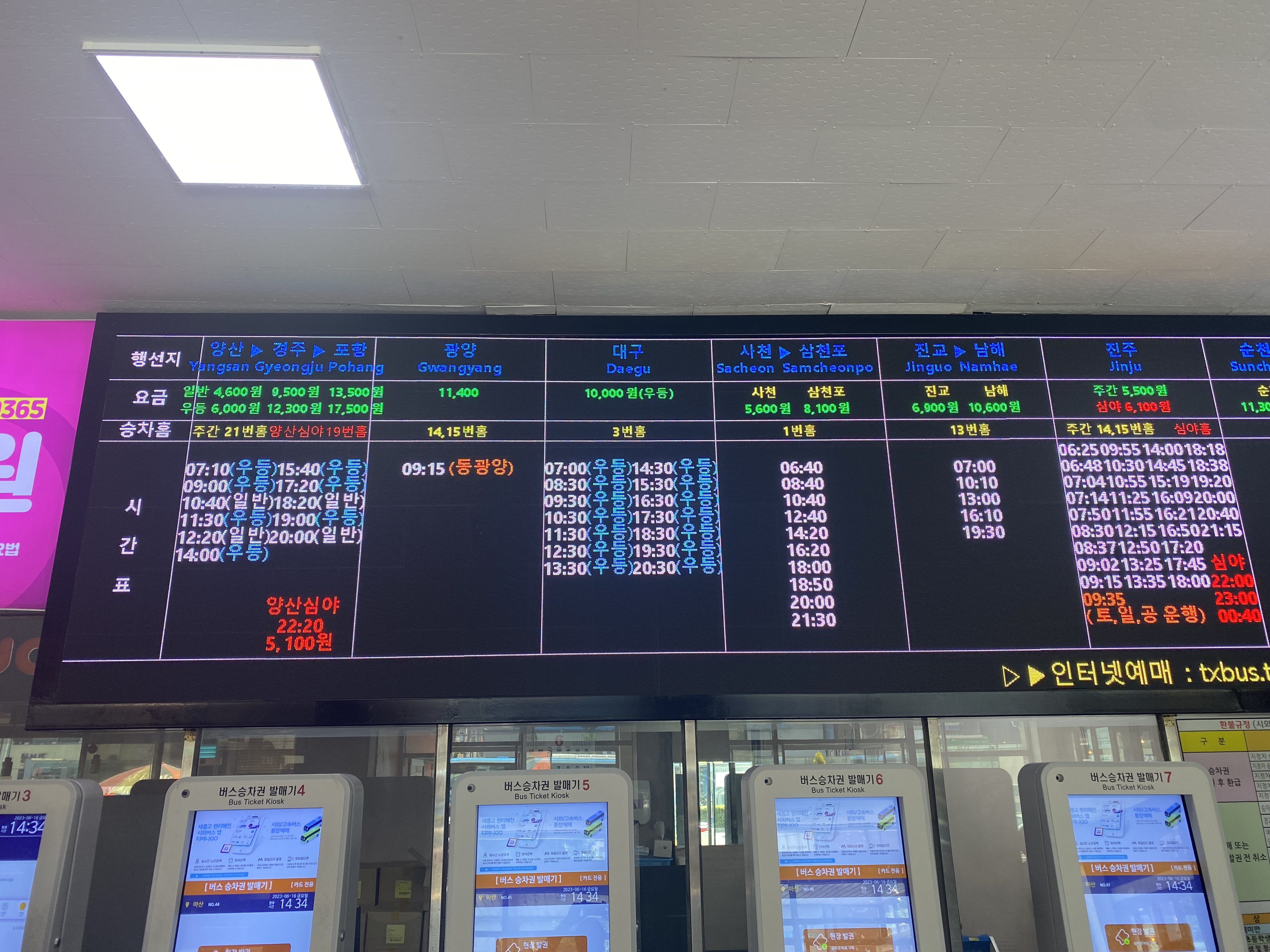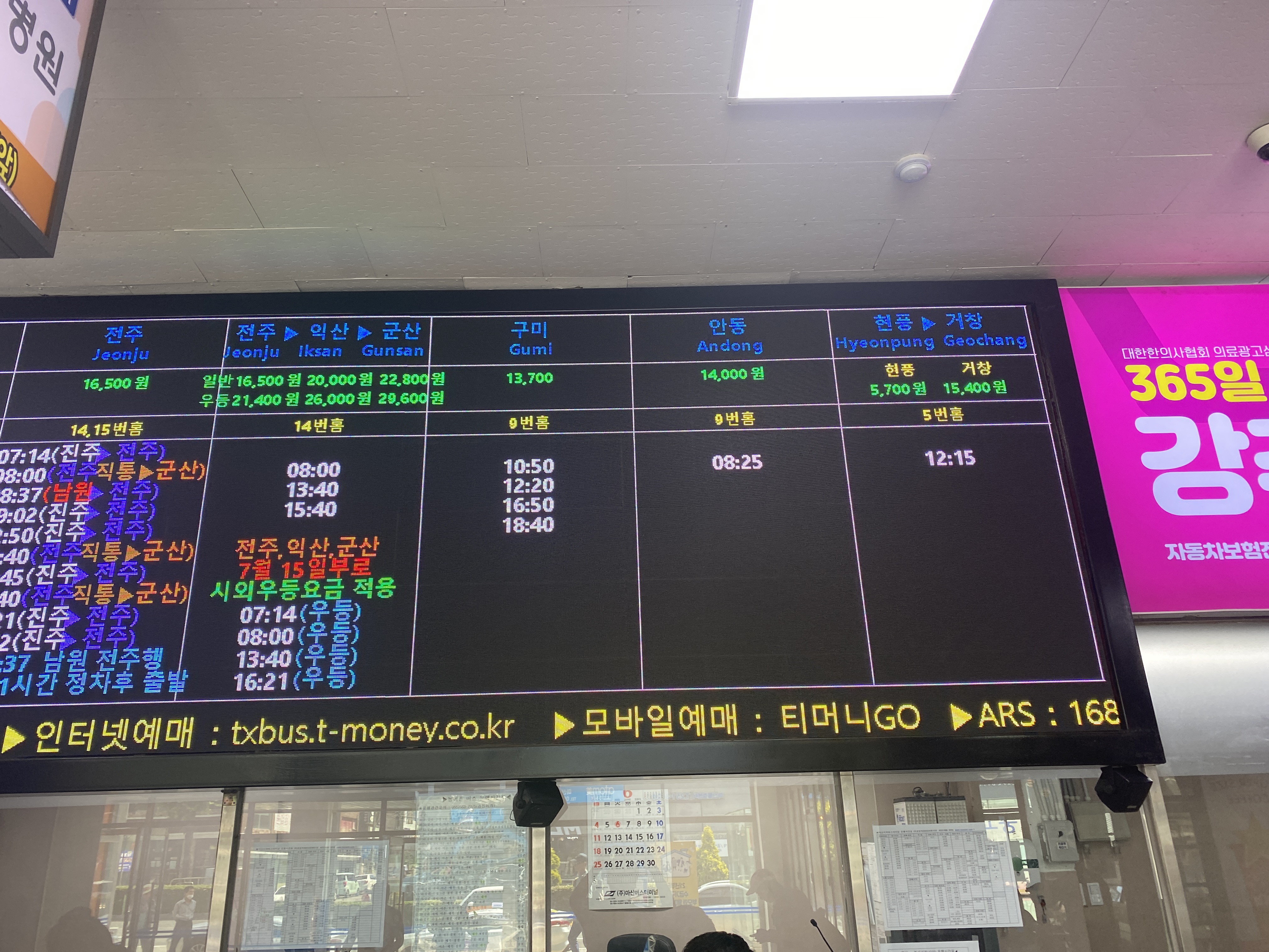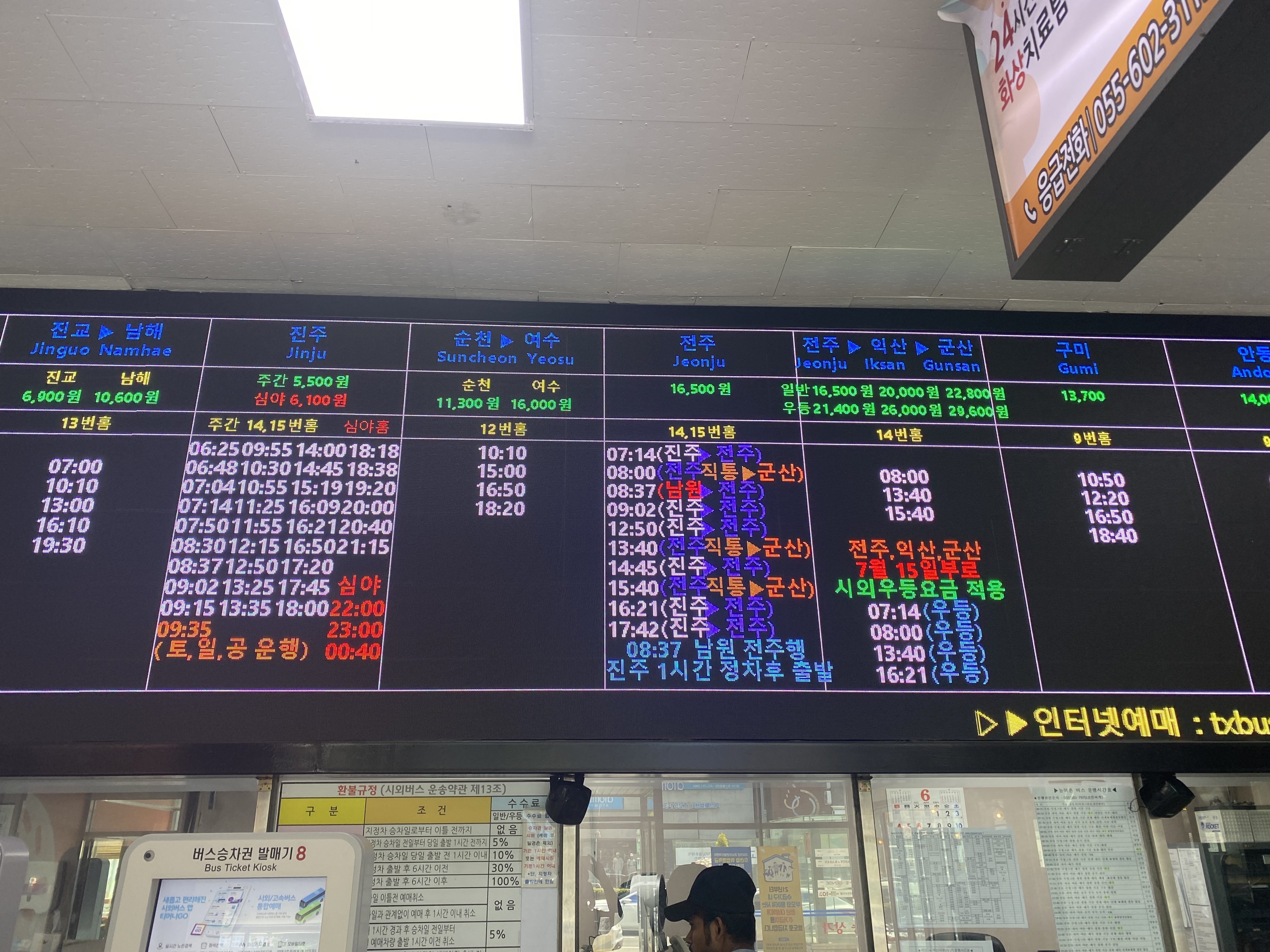 터미널 구경을 했으니 표를 산다. 대부분의 터미널과 마찬가지로 무인발권기와 유인 매표소가 같이 있다.