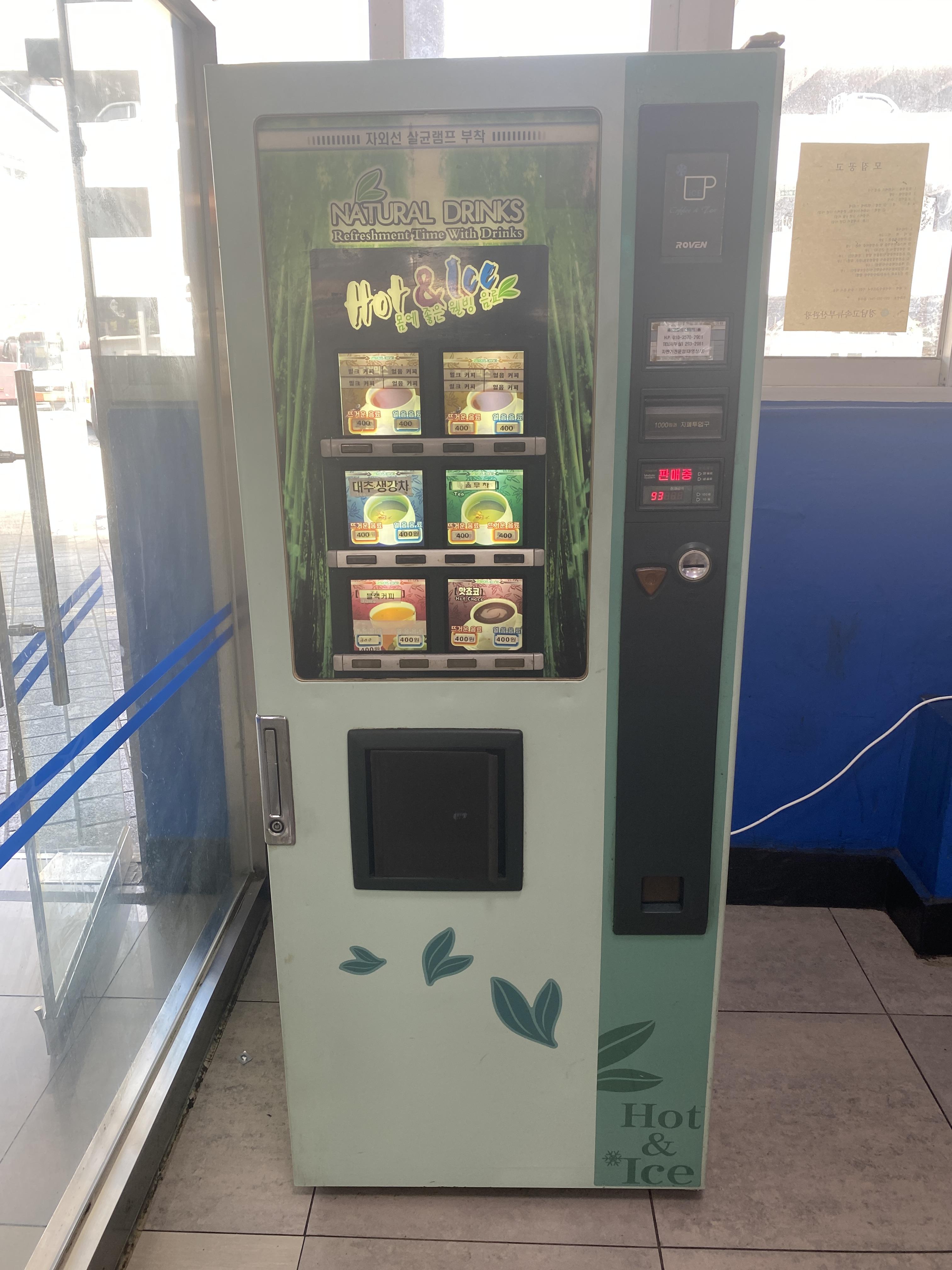 한 편에는 '자외선 살균램프 부착'된 '몸에 좋은 웰빙 음료' 자판기도 있다.