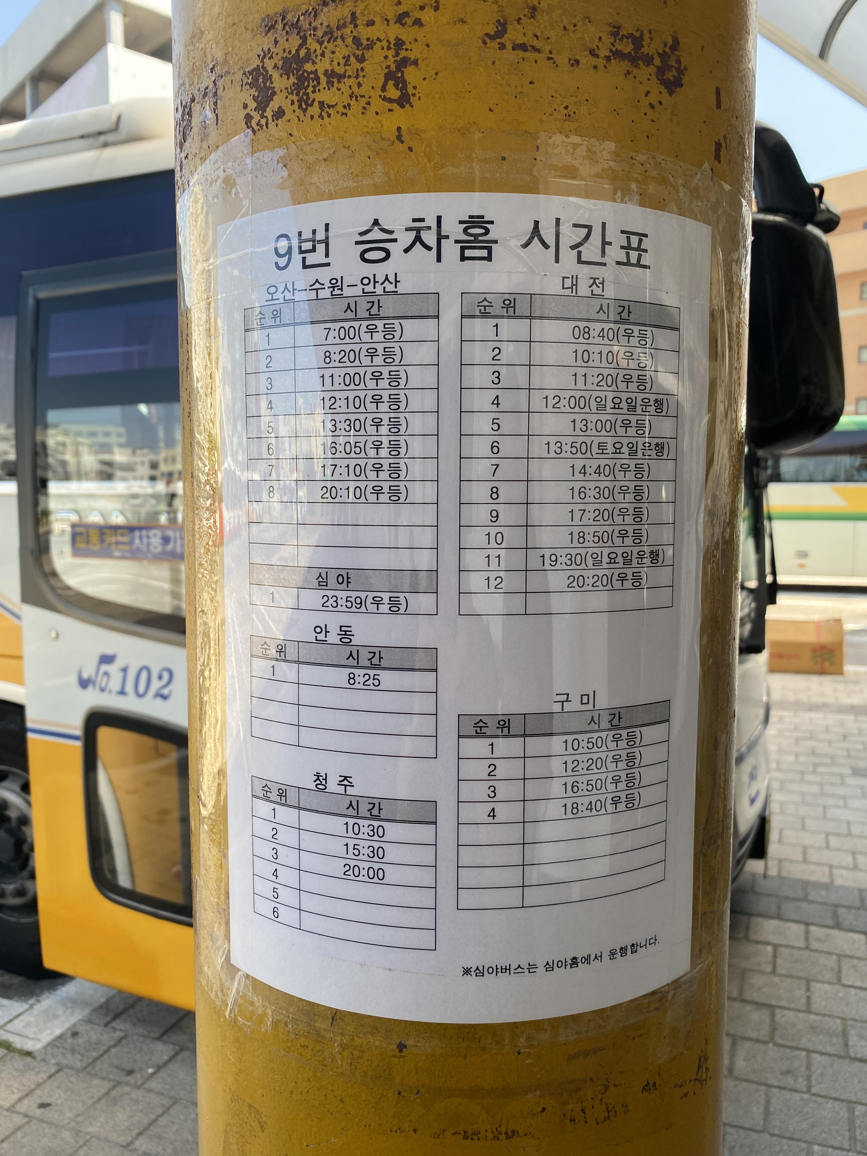 9번 승차홈: 대전 방면