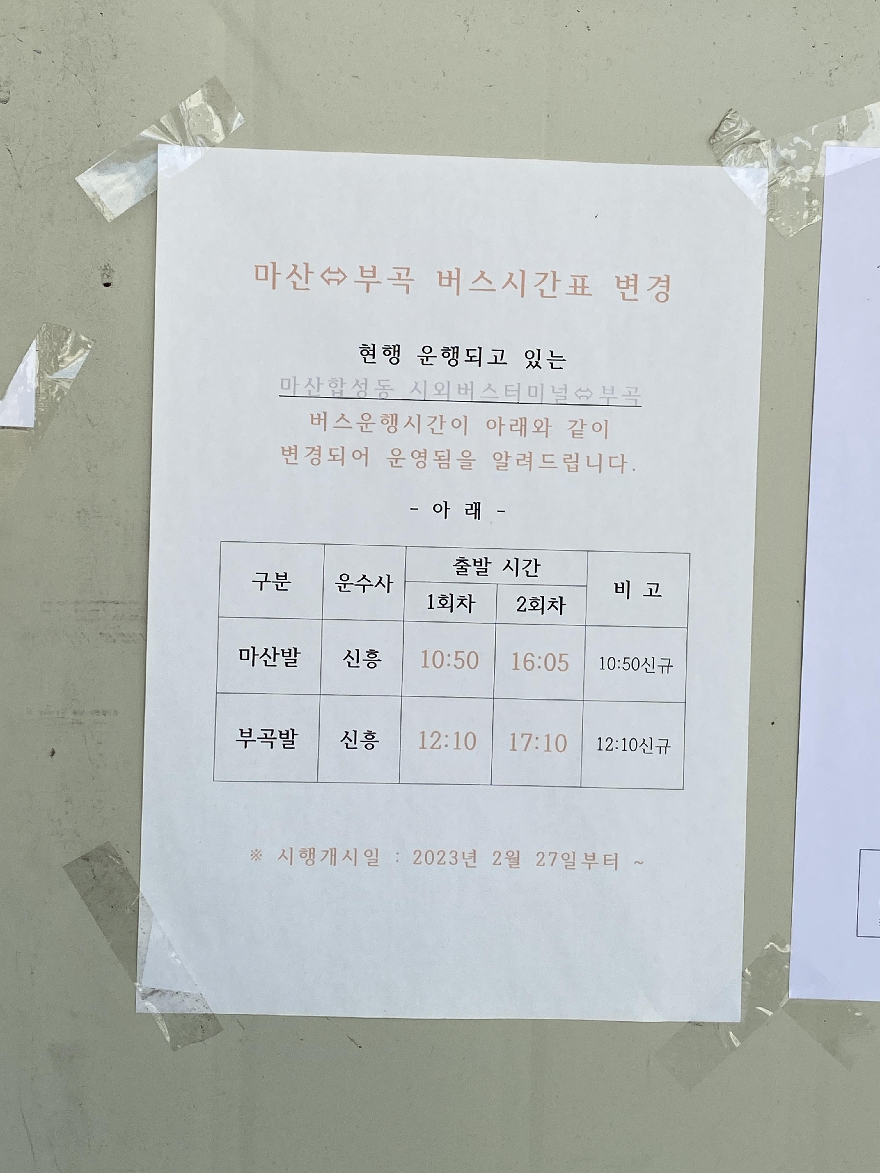 같은 창녕인 부곡 방면은 10:50과 16:05에 다닌다.