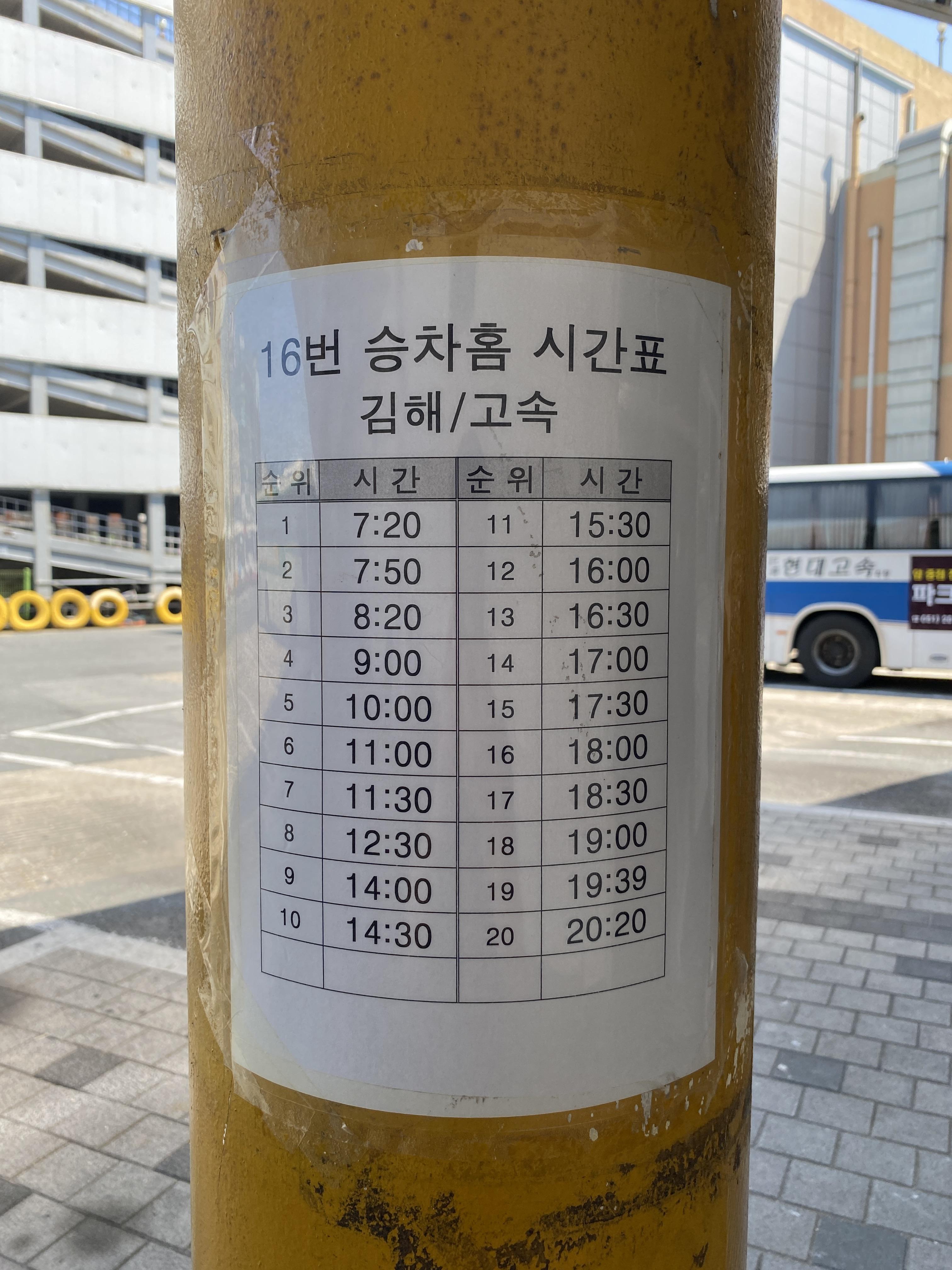 16번 승차홈: 김해(고속)방면