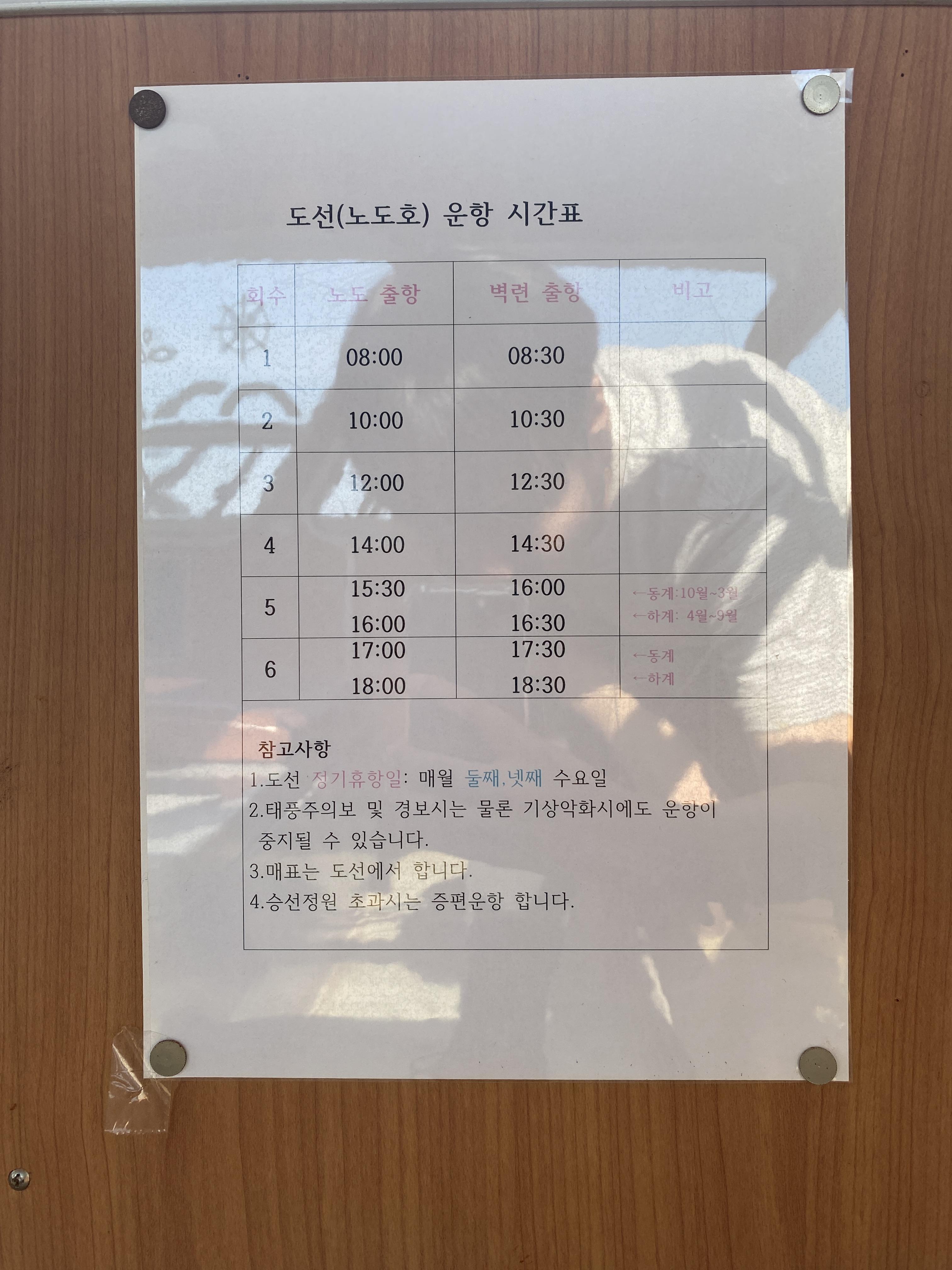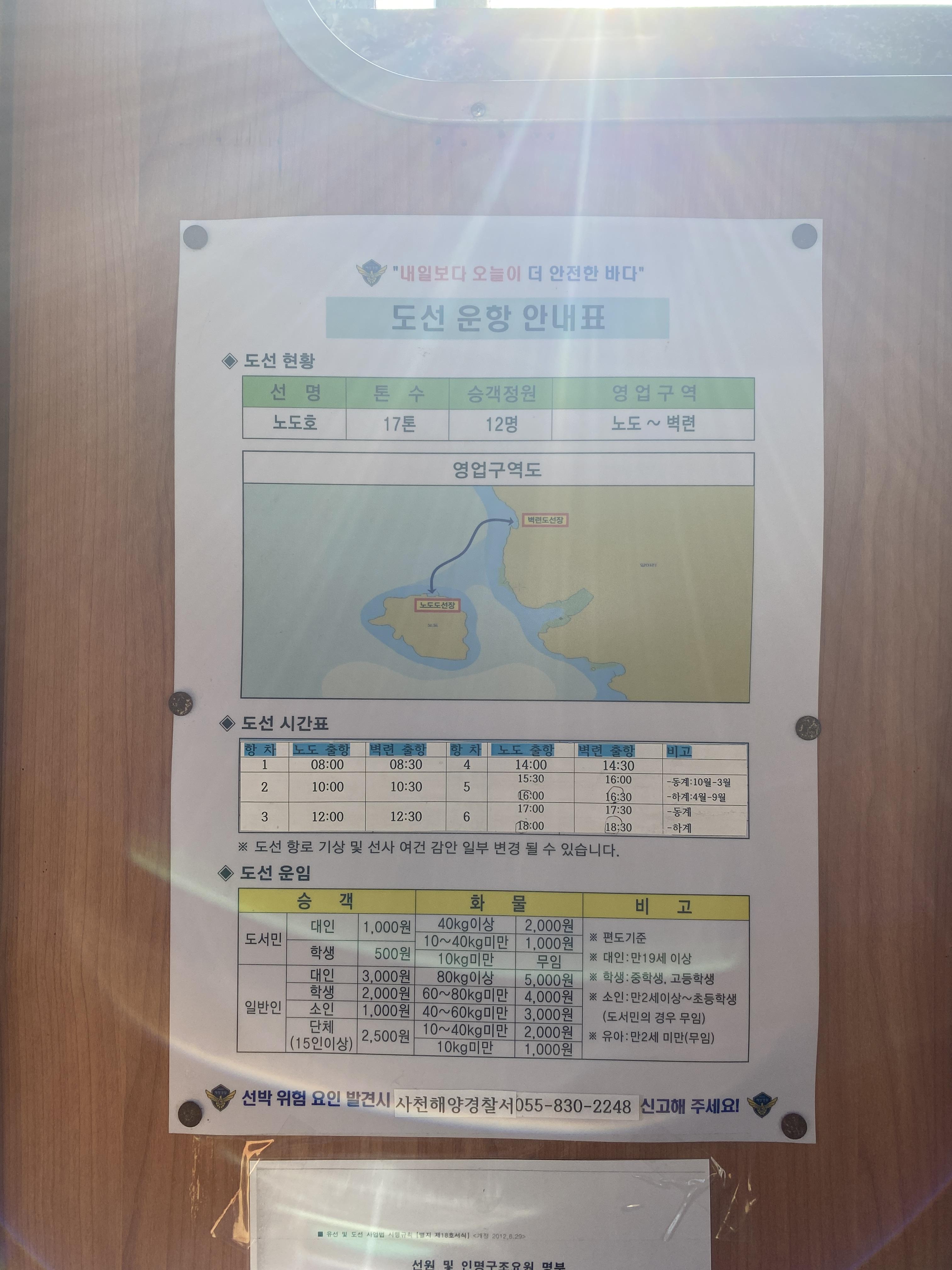벽련-노도 도선대합실이 있지만, 배삯은 배에서 낸다.