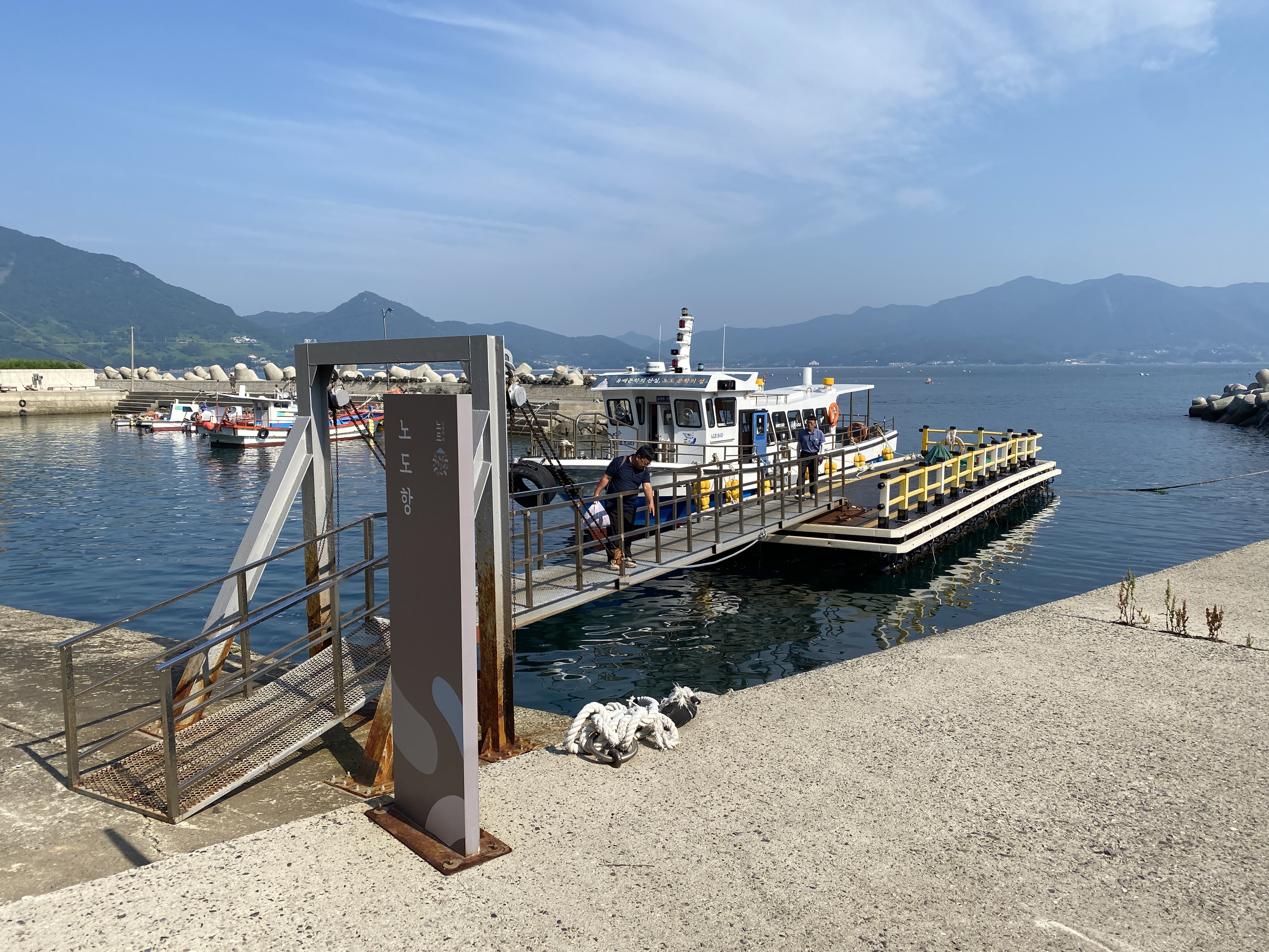 앞에 보이는 배가 벽련항과 노도를 잇는 배다. 배삯은 배를 타고 낸다.