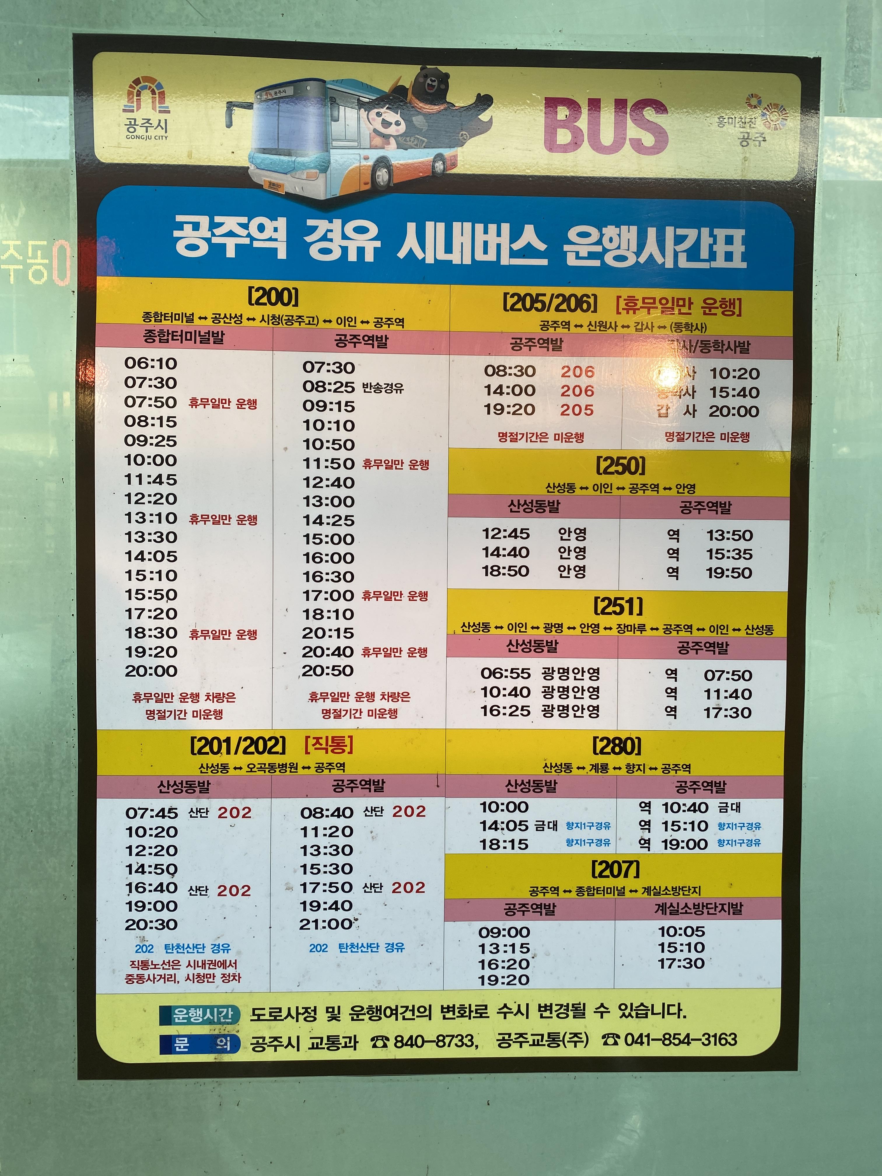 공주역에서 공주시내로가는 버스. 200번을타면 구도심과 신관동까지 갈 수 있다. 생각보다 자주 다닌다.