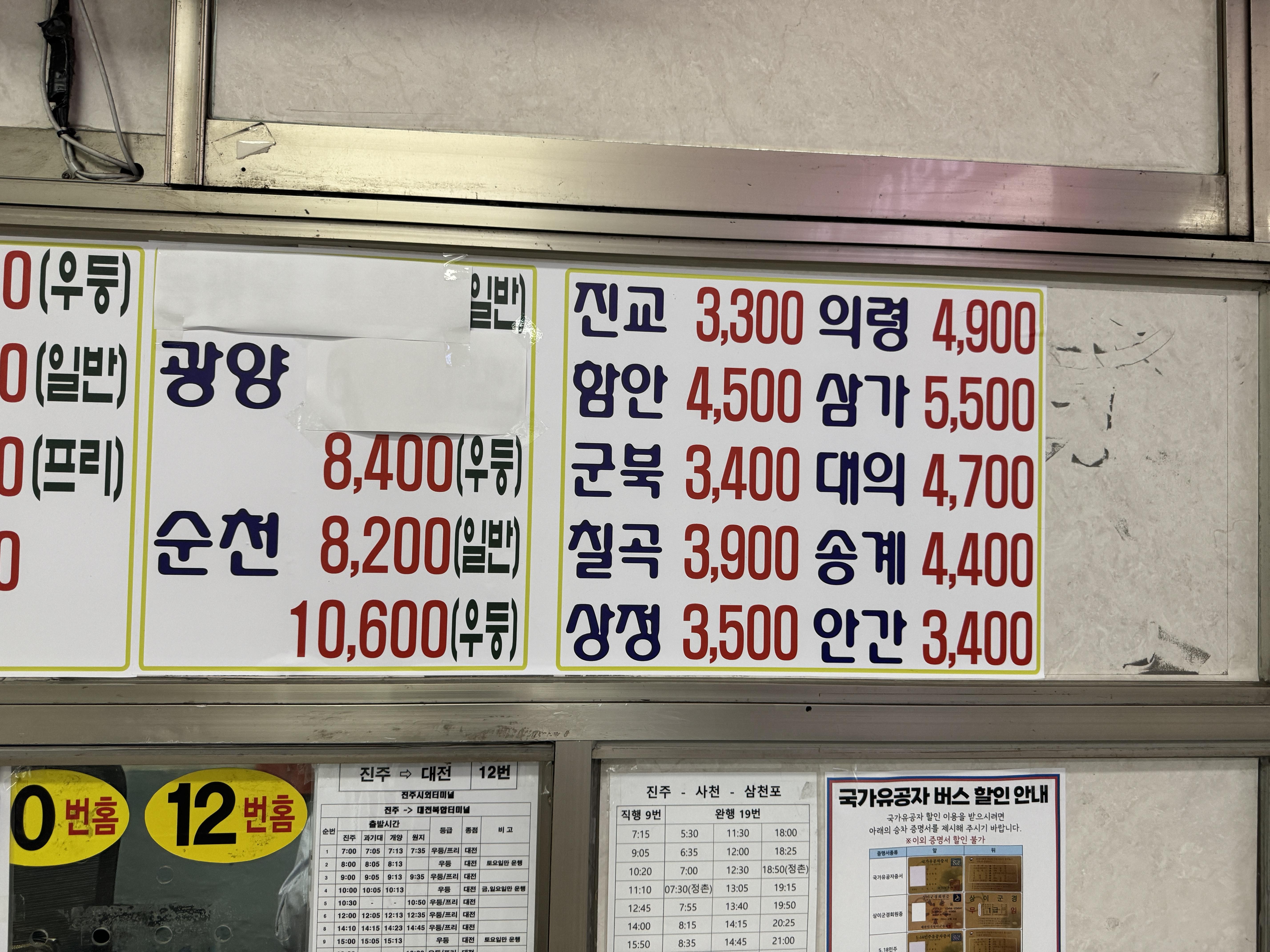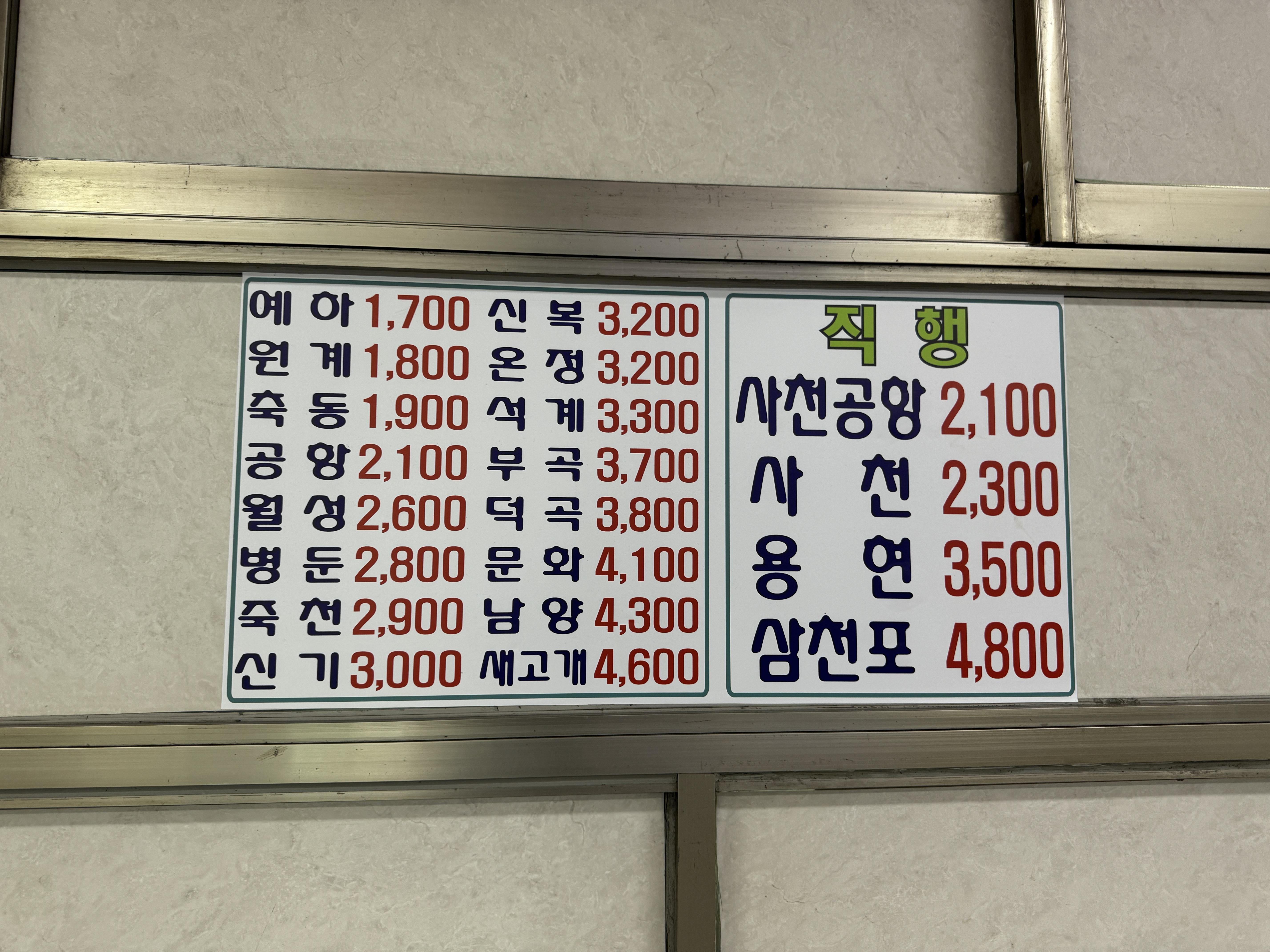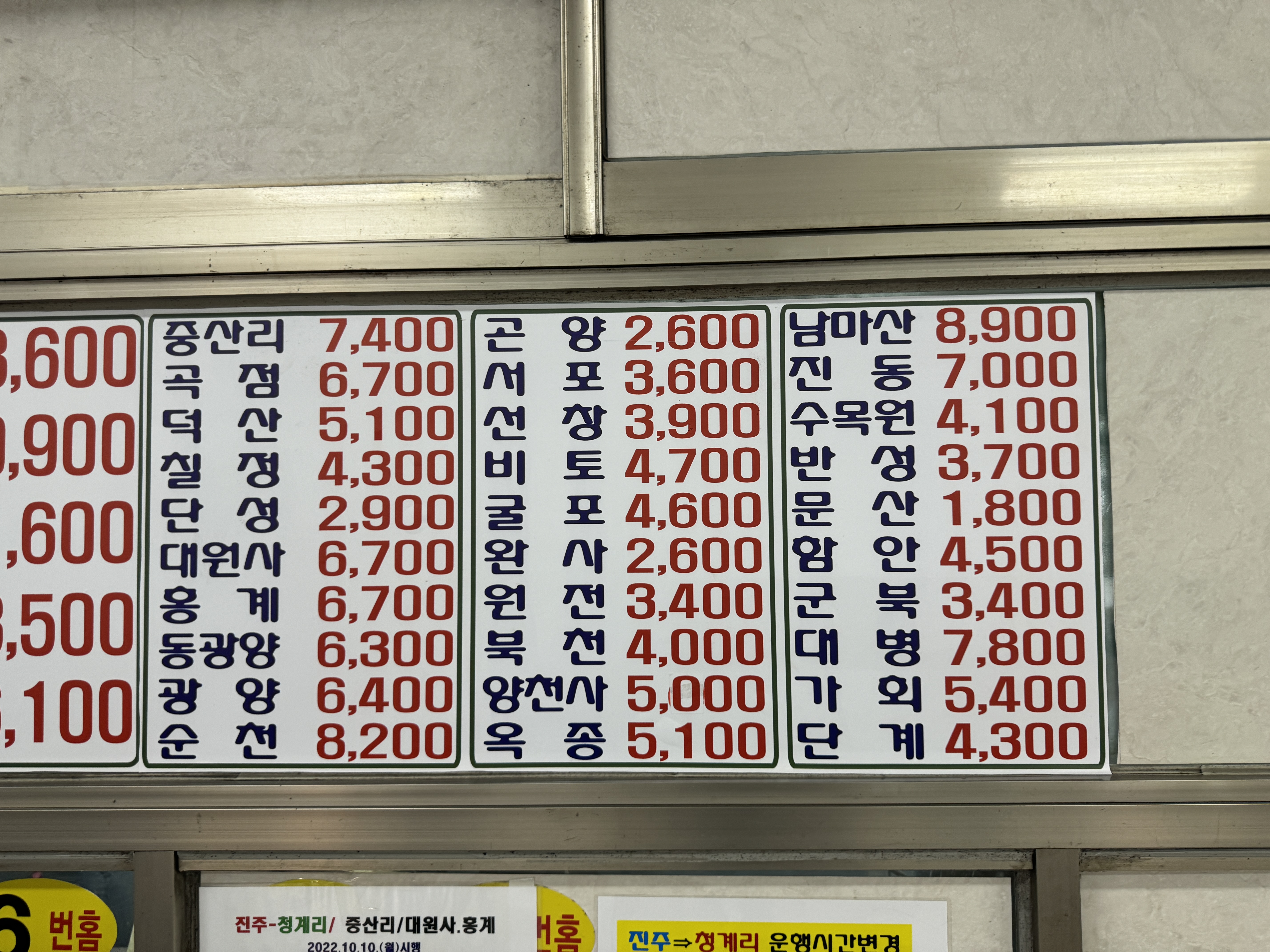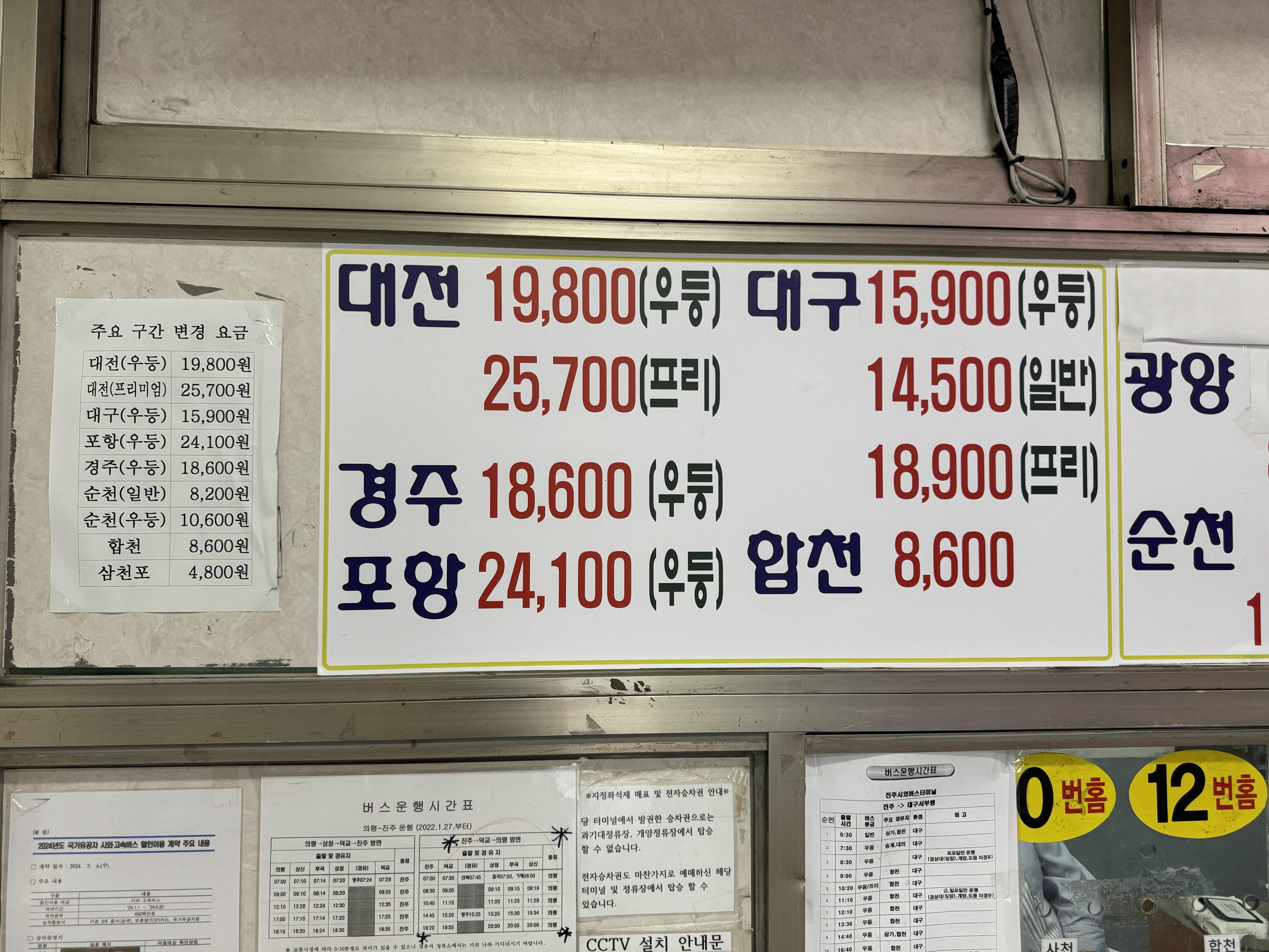 그리고 요금표. 노선이 많은 만큼 행선지도 많은데, 터미널차원에서 정리할 필요가 있을 것 같다. 요금 찾는 것도 일이다.