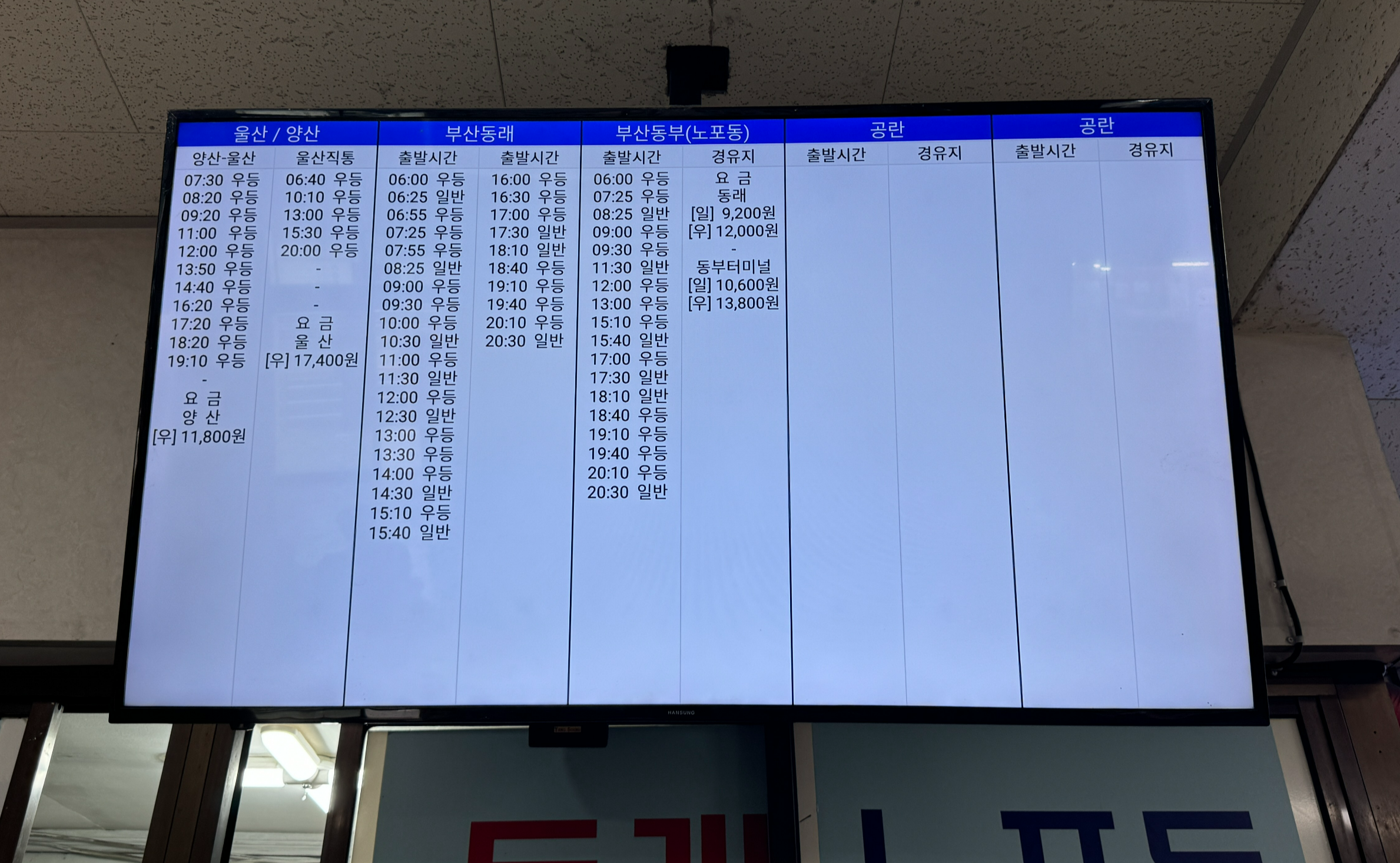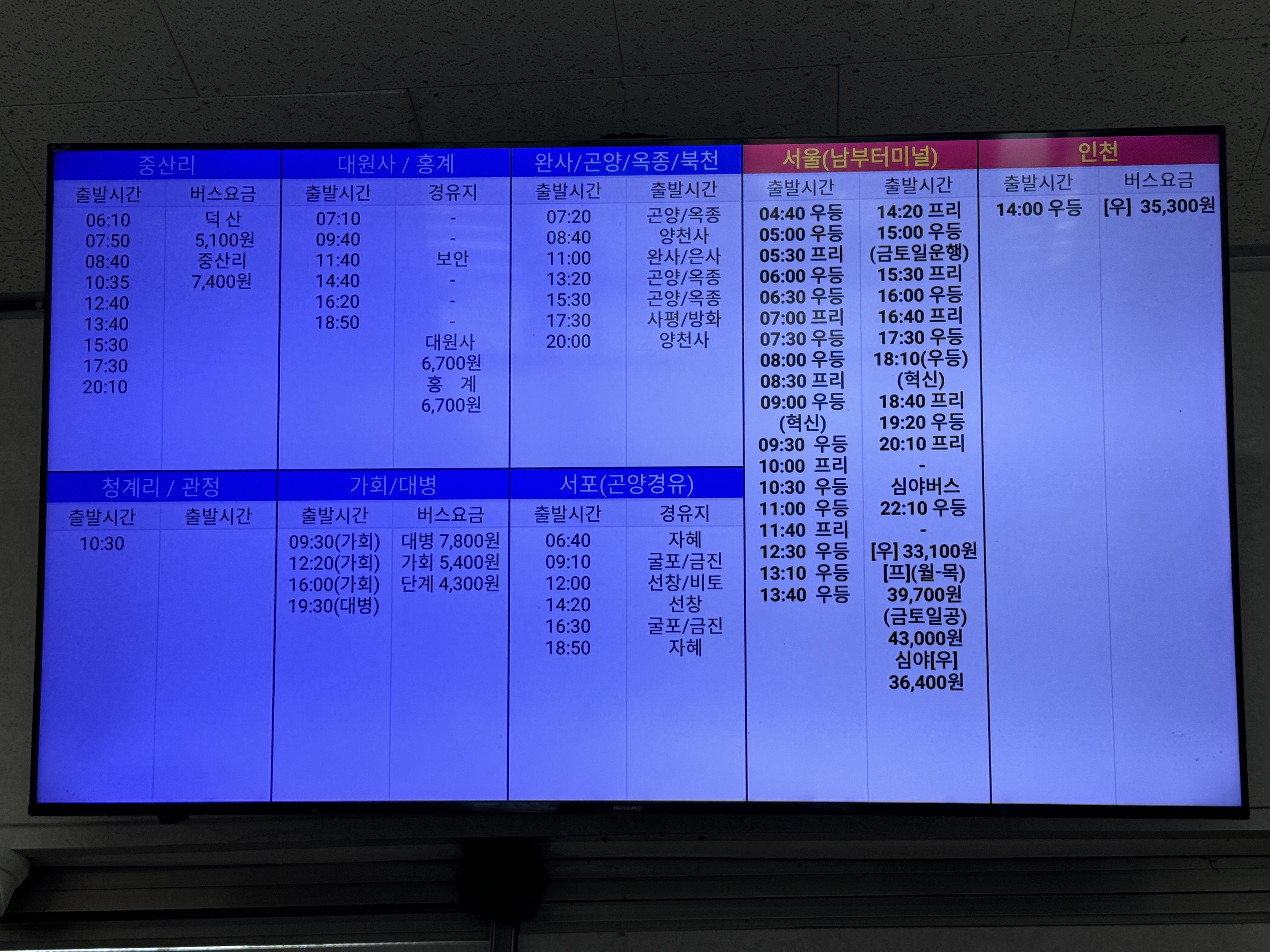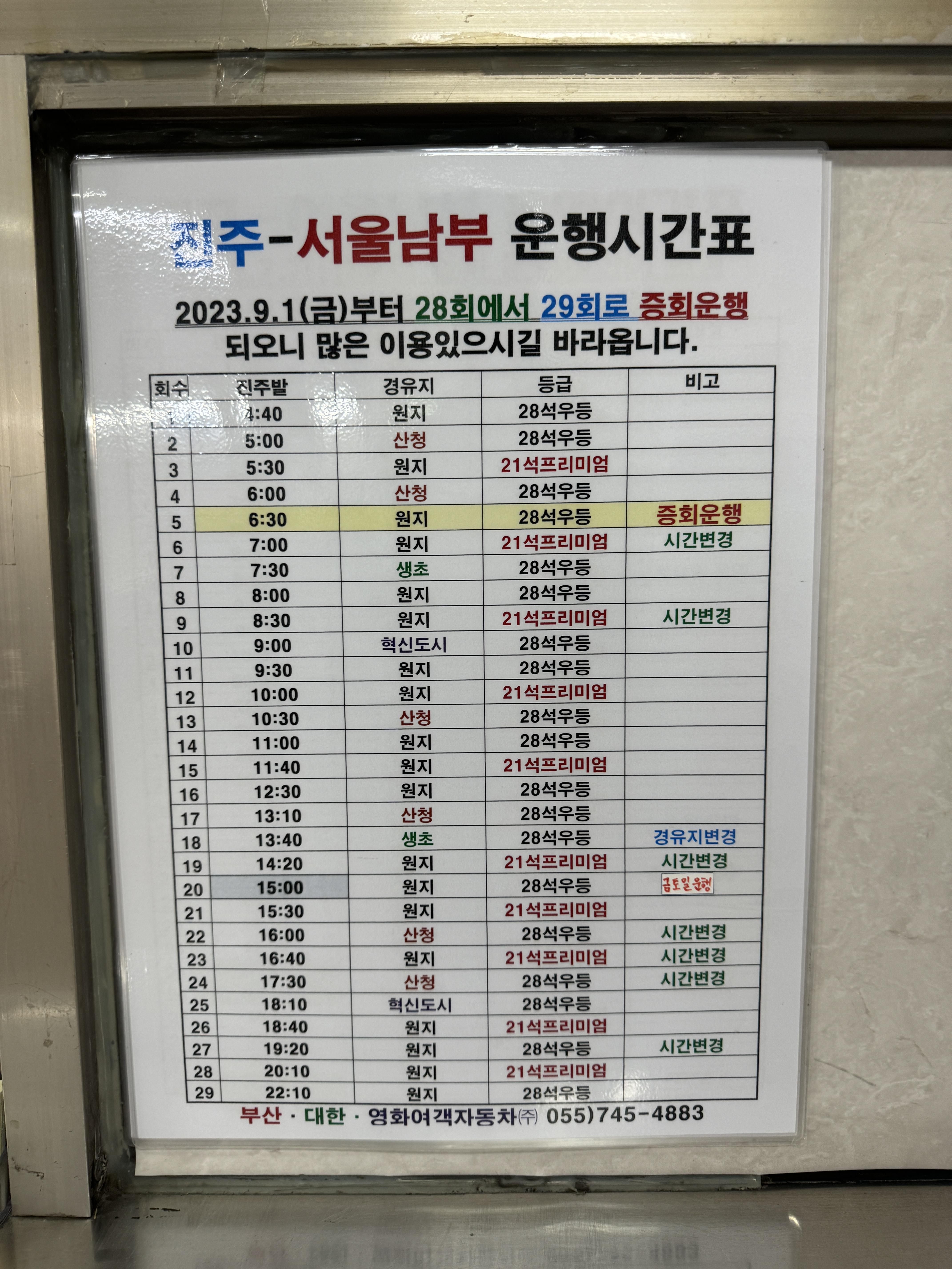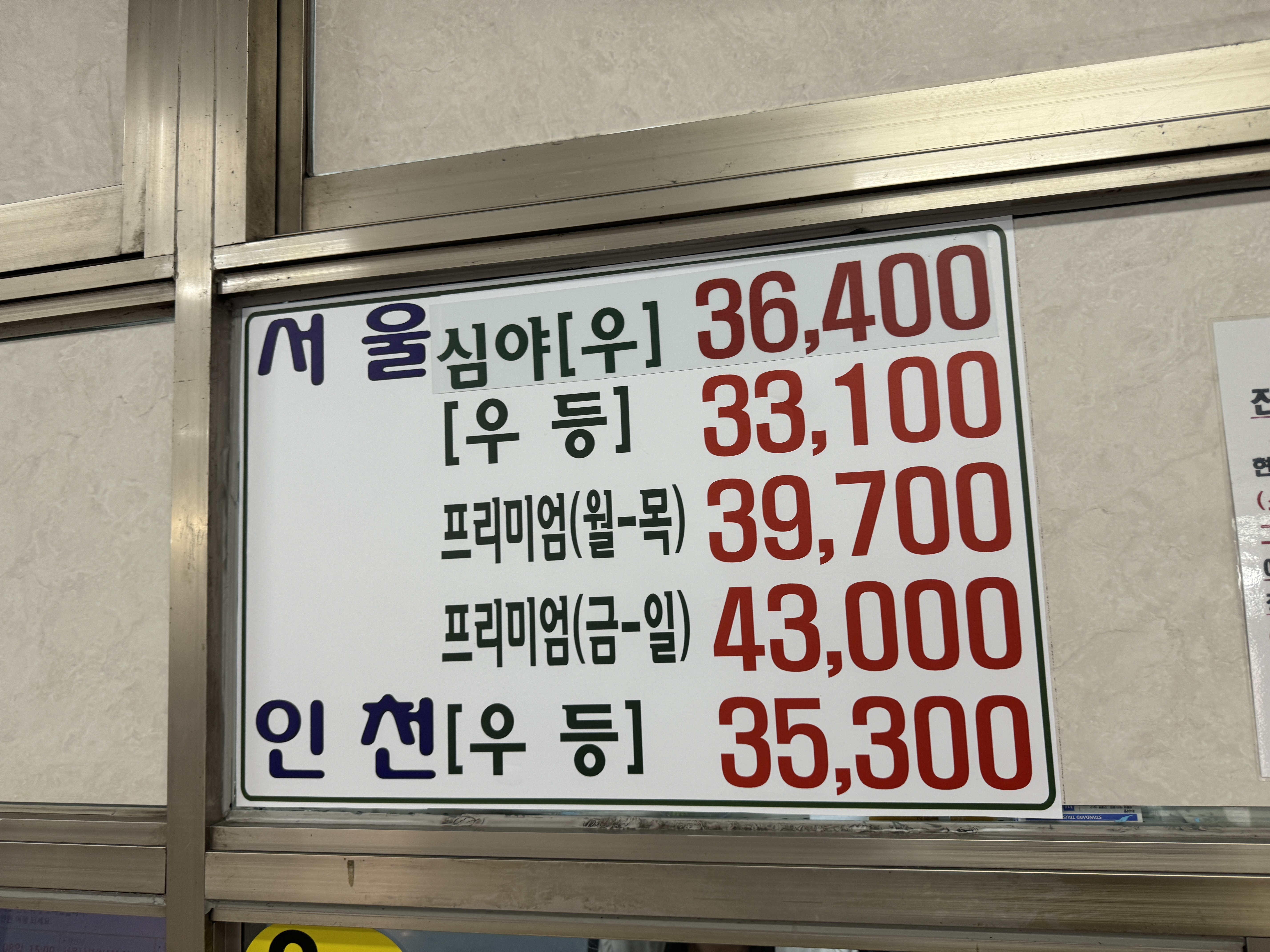 그리고 요금표. 노선이 많은 만큼 행선지도 많은데, 터미널차원에서 정리할 필요가 있을 것 같다. 요금 찾는 것도 일이다.