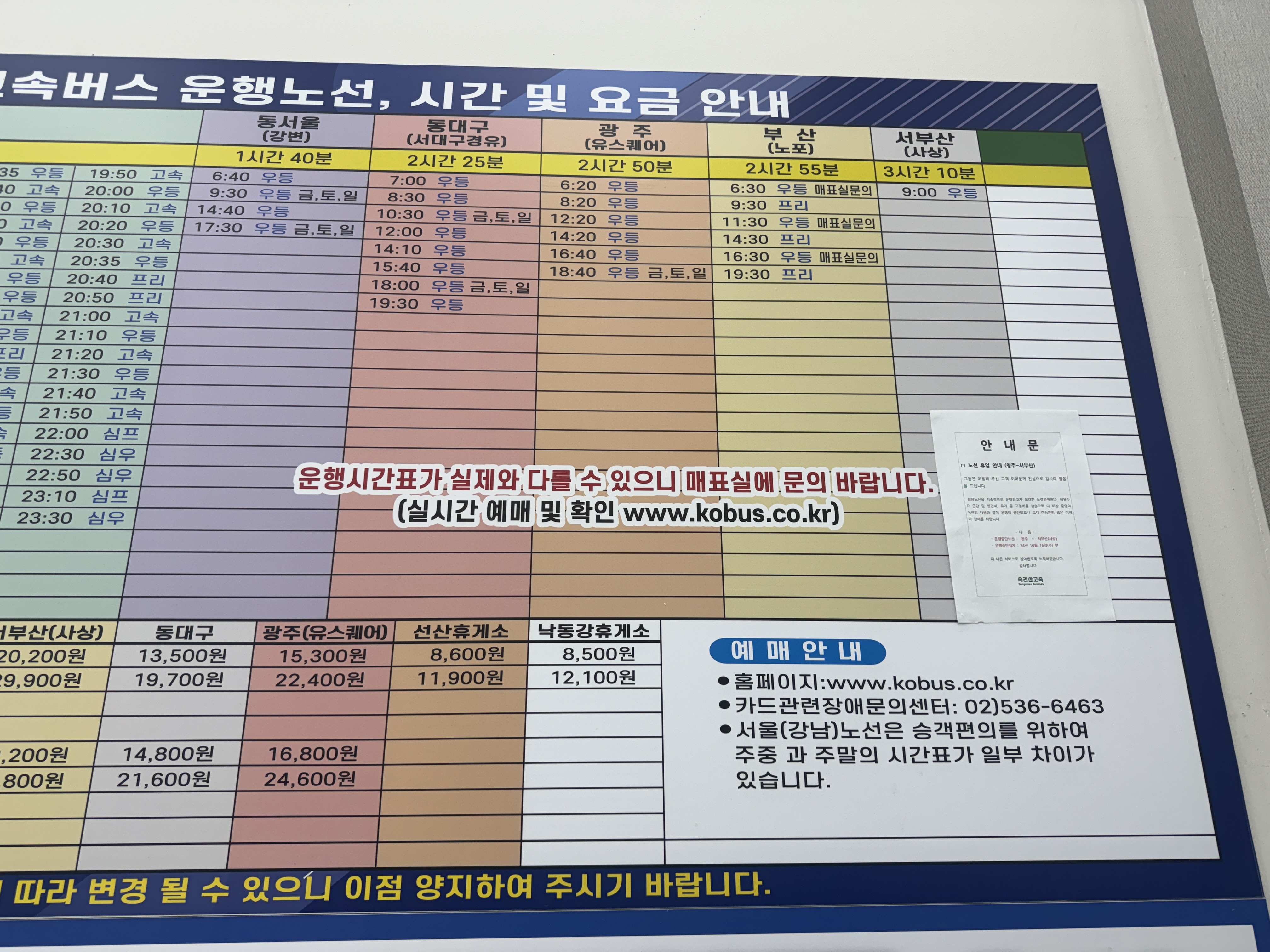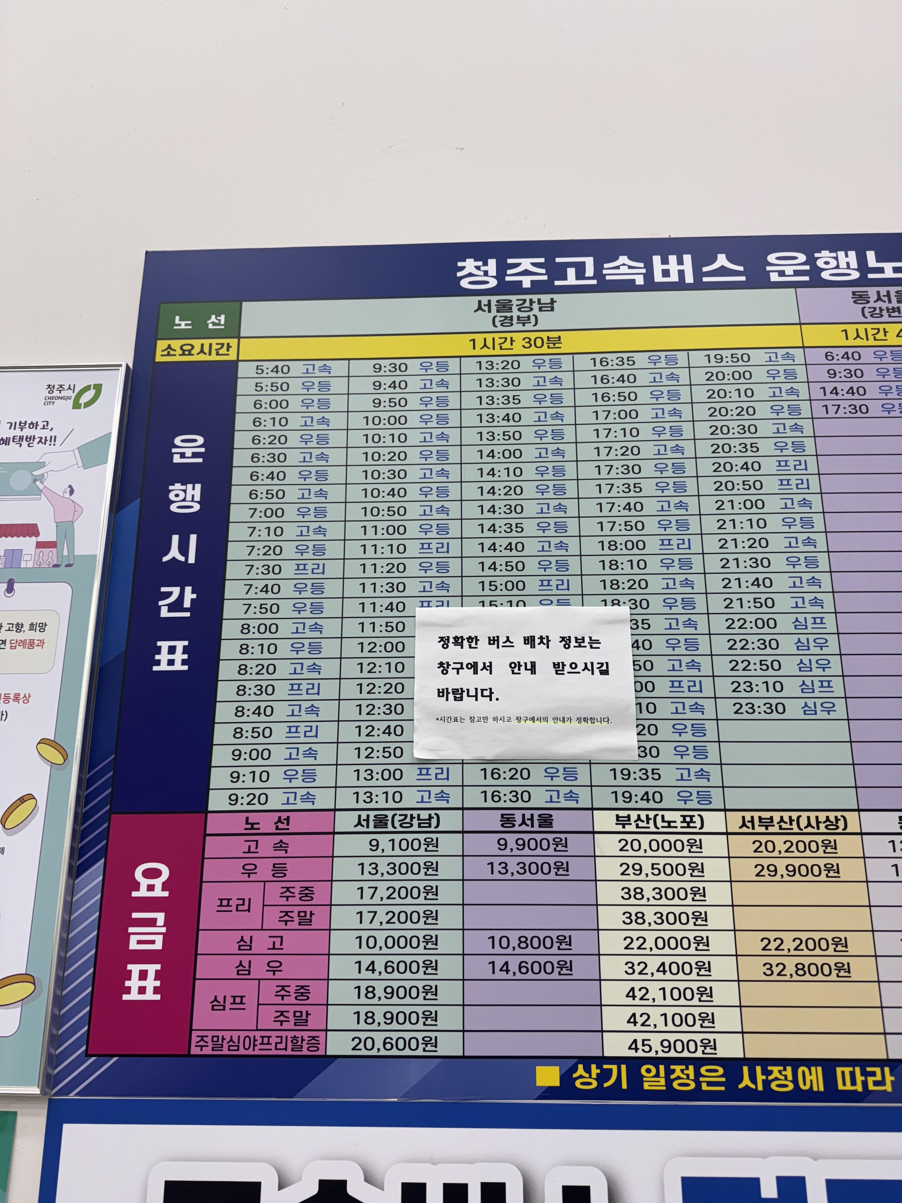 언젠가 쓰려고 했던 ‘청주 고속버스(임시) 터미널’ 시간표