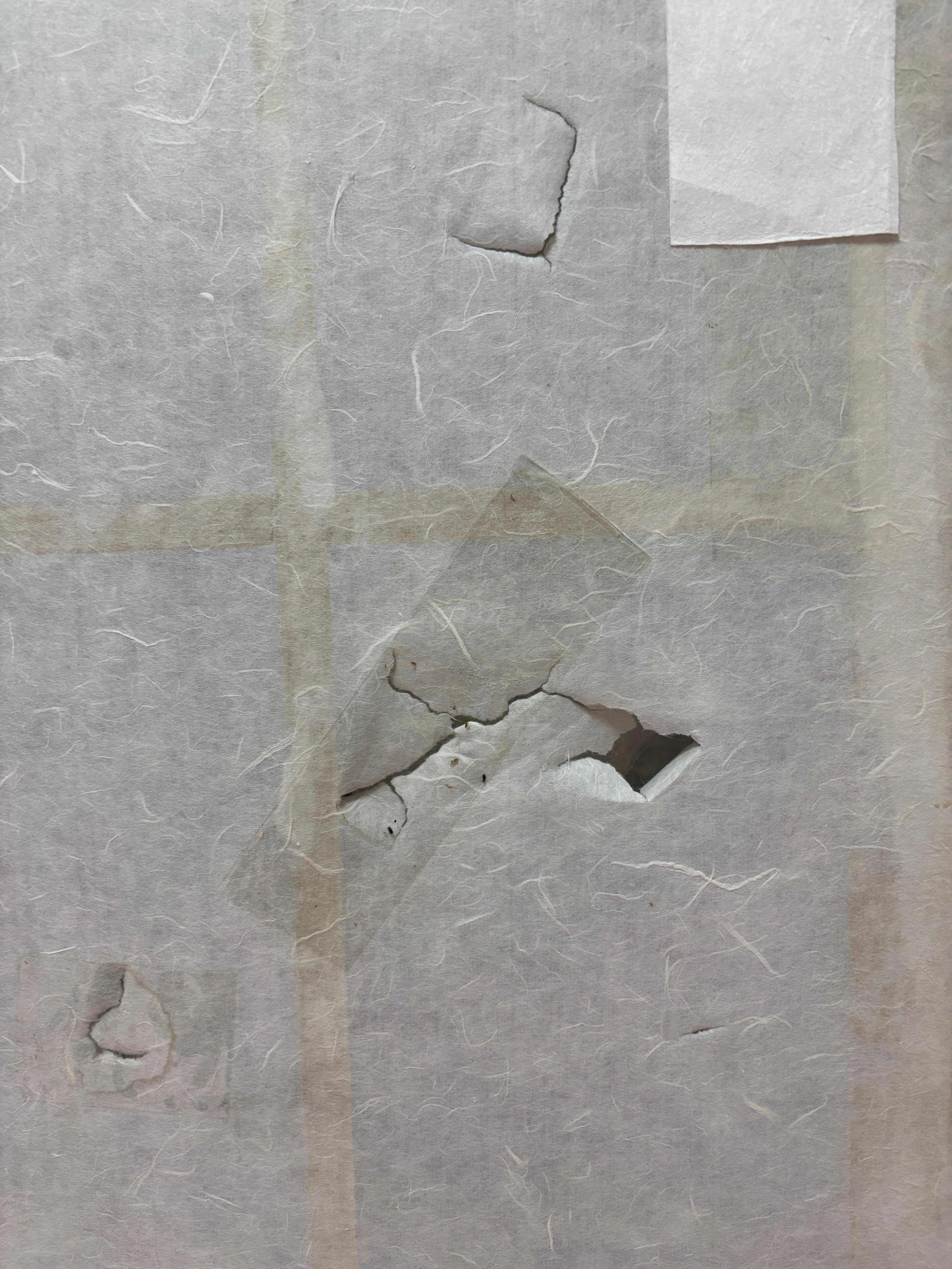 J는 창호지에 난 구멍으로 눈오는 걸 봤다.
